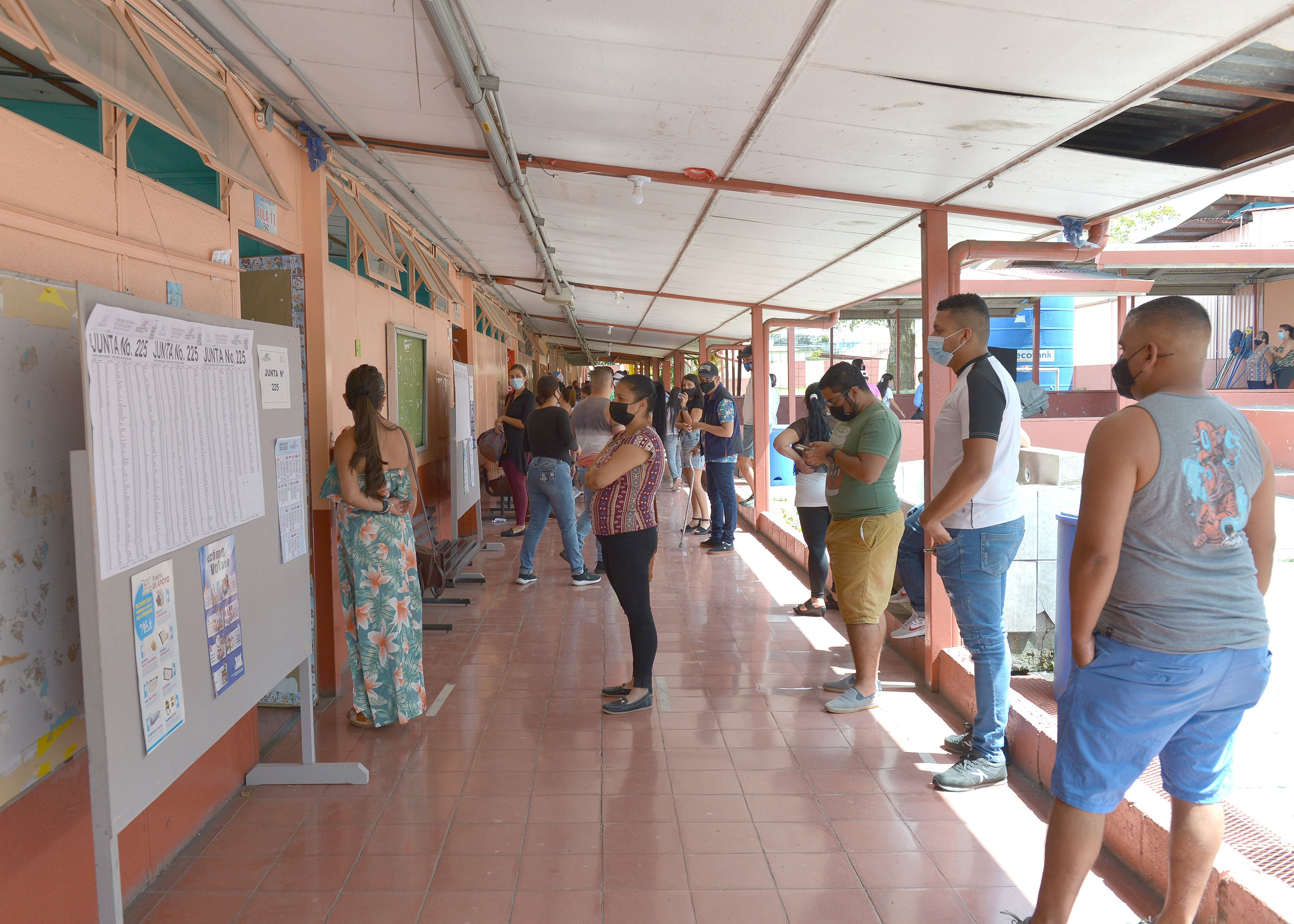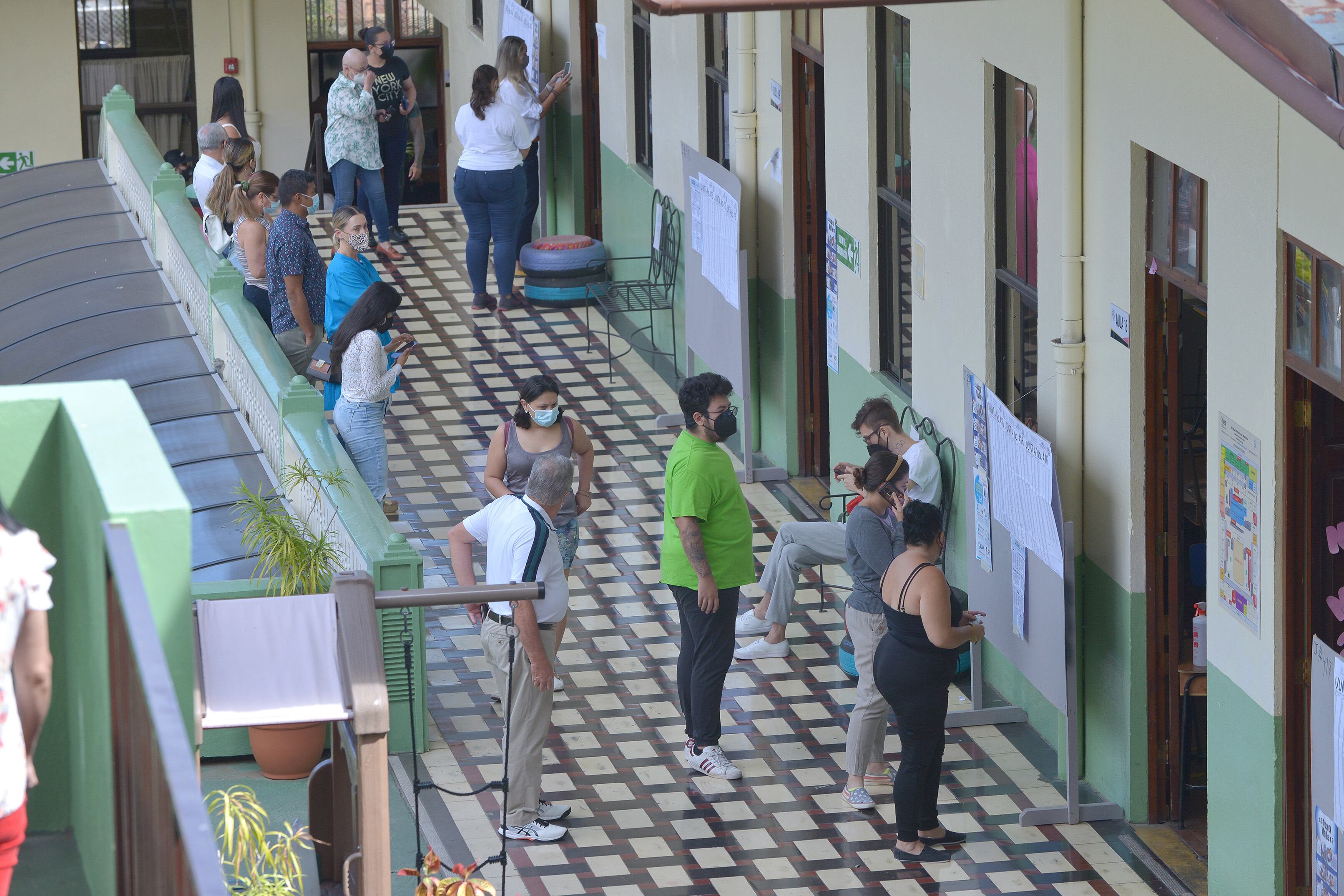 “Cien metros antes de la entrada de la escuela las banderas de Liberación Nacional, Unidad Social Cristiana, el Frente Amplio y el Liberal Progresista recibían a los votantes. A la entrada del centro educativo una persona rociaba alcohol las manos de los electores y después cada quien buscaba su junta electoral”, cuenta nuestra redactora Rocío Sandí.