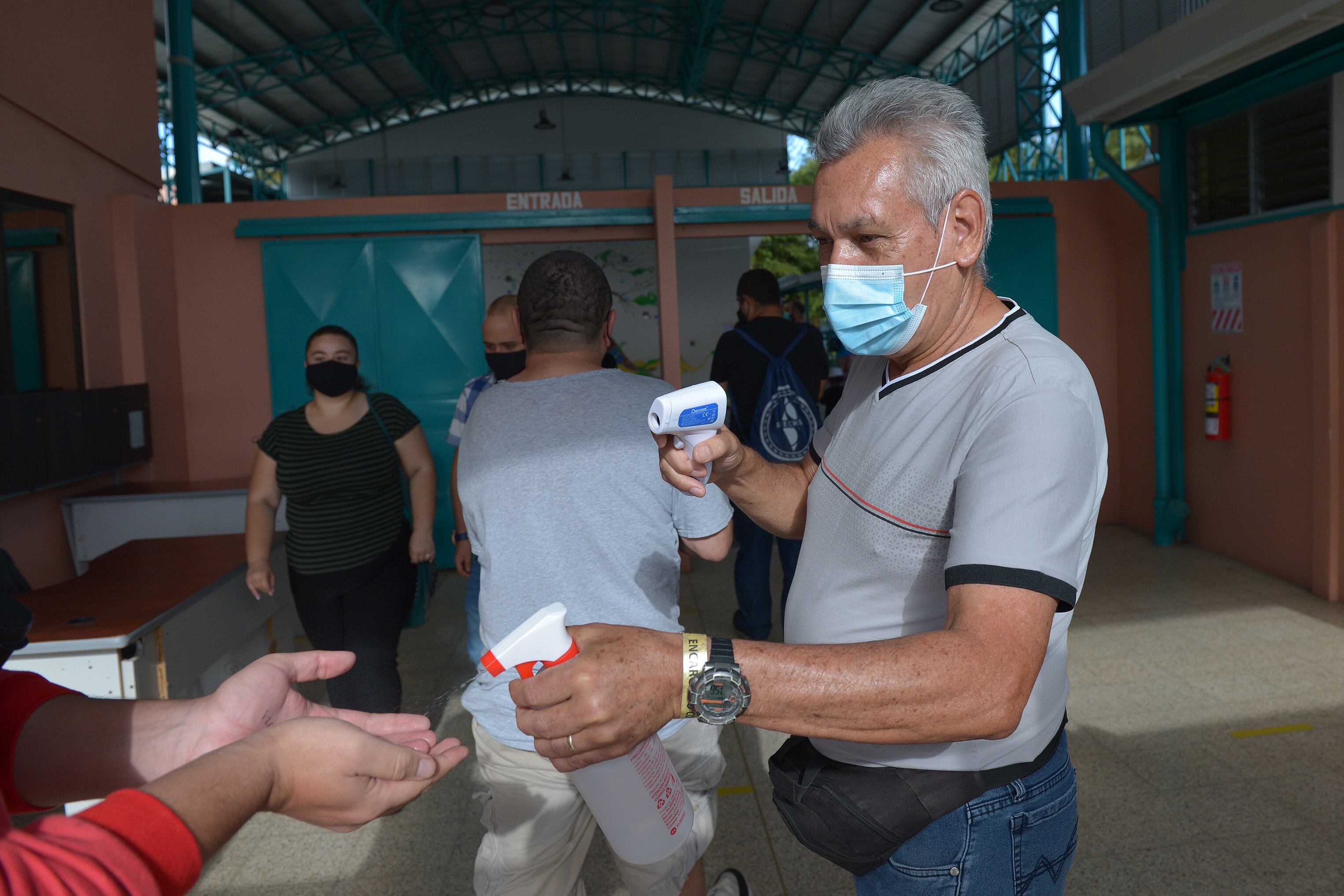 “Me levanté a las cinco de la mañana, desayuné gallo pinto con huevito que me hizo mi esposa (doña Mercedes Muñiz) y me vine a trabajar con el Tribunal. Me gusta mucho lo que hago porque estoy aportando mi granito en la lucha contra el covid-19; la gente es muy respetuosa, todo el mundo le pone las manos a uno para que le eche el alcohol”, explicó don Roberto.