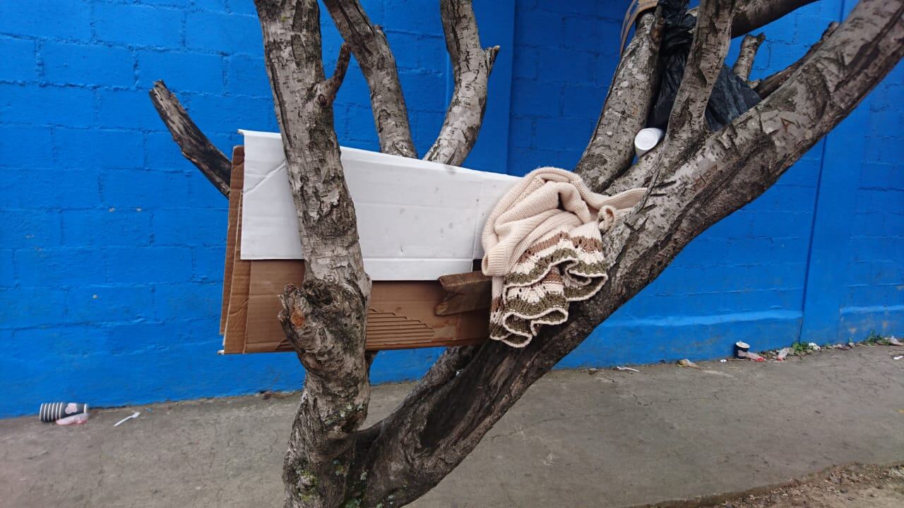 Alondra pasó la noche del domingo acostada en un "colchón" de cartón y cobijada únicamente con la esperanza de que este lunes le dieran cita para la entrevista.