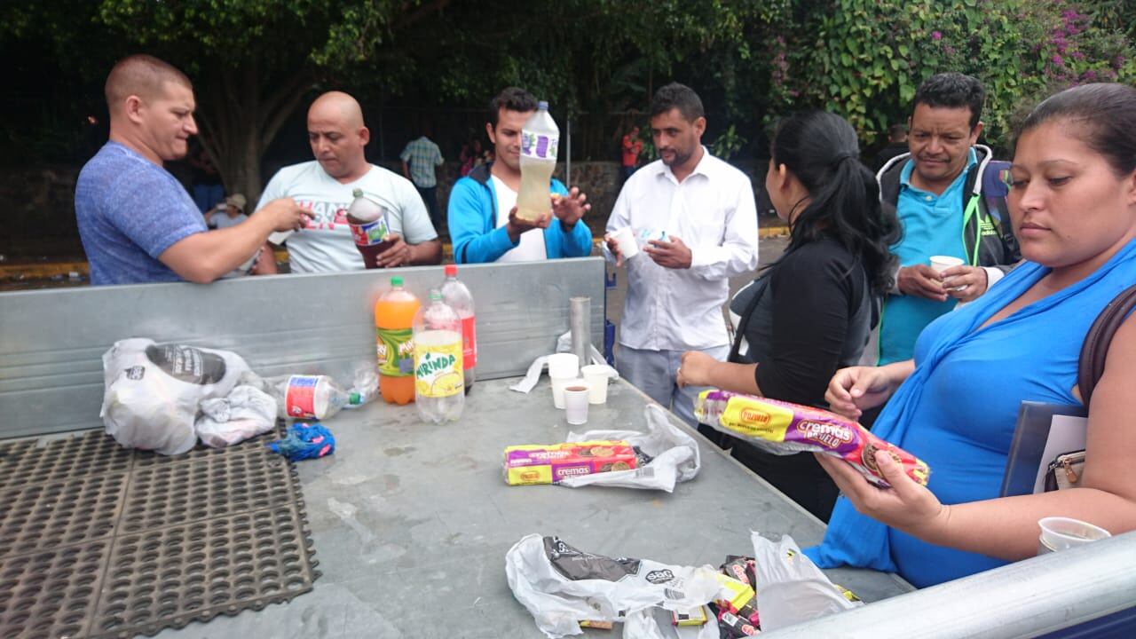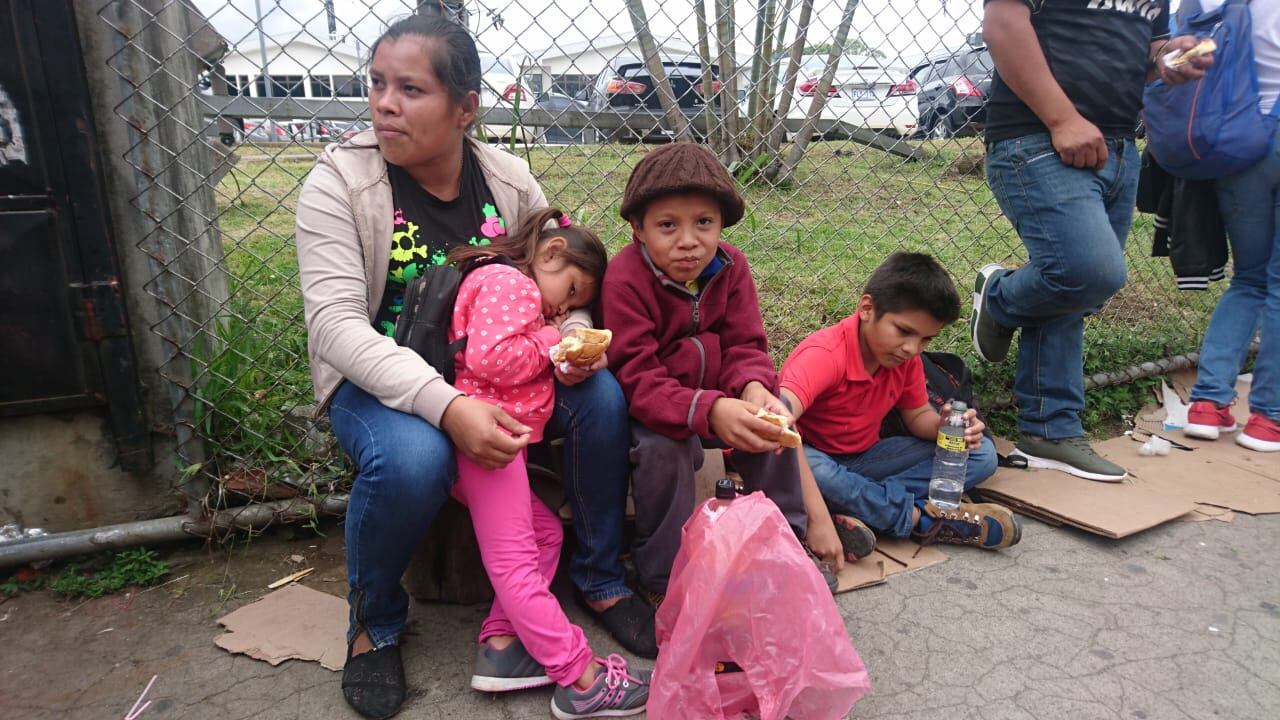 Ellos también tenían un día de estar en la fila y los pequeños se estaban comiendo un pedacito de pan que les regalaron después de haber hecho "ayuno" toda la madrugada.