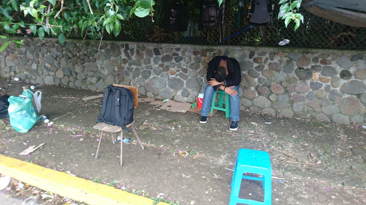"Estoy acá desde las tres de la tarde (del domingo). Gracias a Dios no llovió en la noche, pero sí hizo mucho frío", señaló.