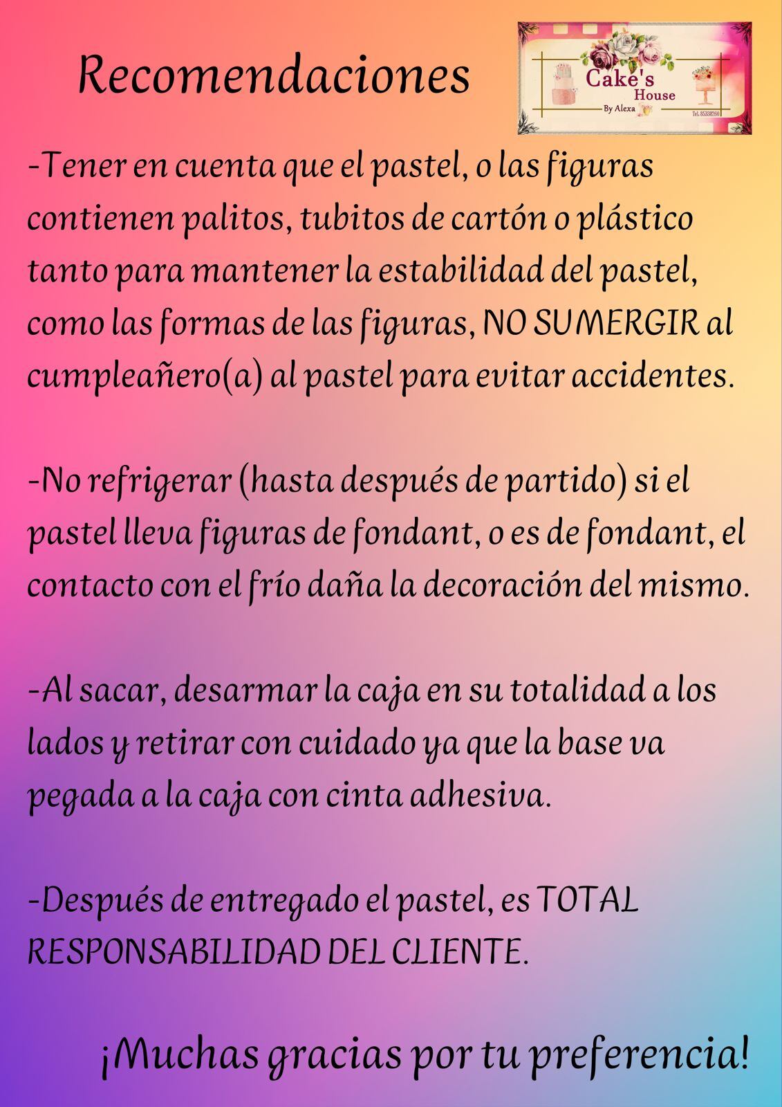 Las dos pasteleras fueron enfáticas en que cada vez que entregan un queque, ellas le explican bien a los clientes que tiene una estructura y que por nada del mundo deben empujar la cabeza de alguien en el pastel. Incluso, Alejandra acostumbra poner una tarjeta en los queques en la que hace la advertencia del peligro de hacer eso.