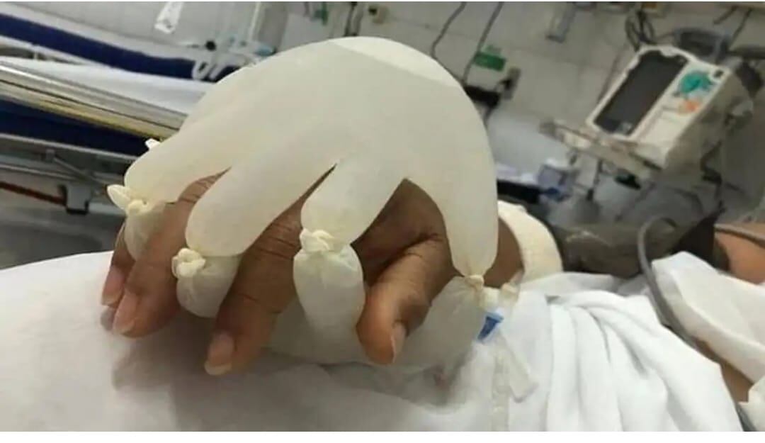 Una de esas iniciativas llenas de amor fue obra de la enfermera brasileña Lidiane Melo, quien no lograba medir los niveles de oxígeno de una paciente por lo frías que estaban sus manos a pesar de todos los esfuerzos que hizo, no pudo calentarlas, por lo que se le ocurrió amarrar dos guantes quirúrgicos llenos de agua caliente y meter la mano de la paciente entre estas y el resultado fue de inmediato.