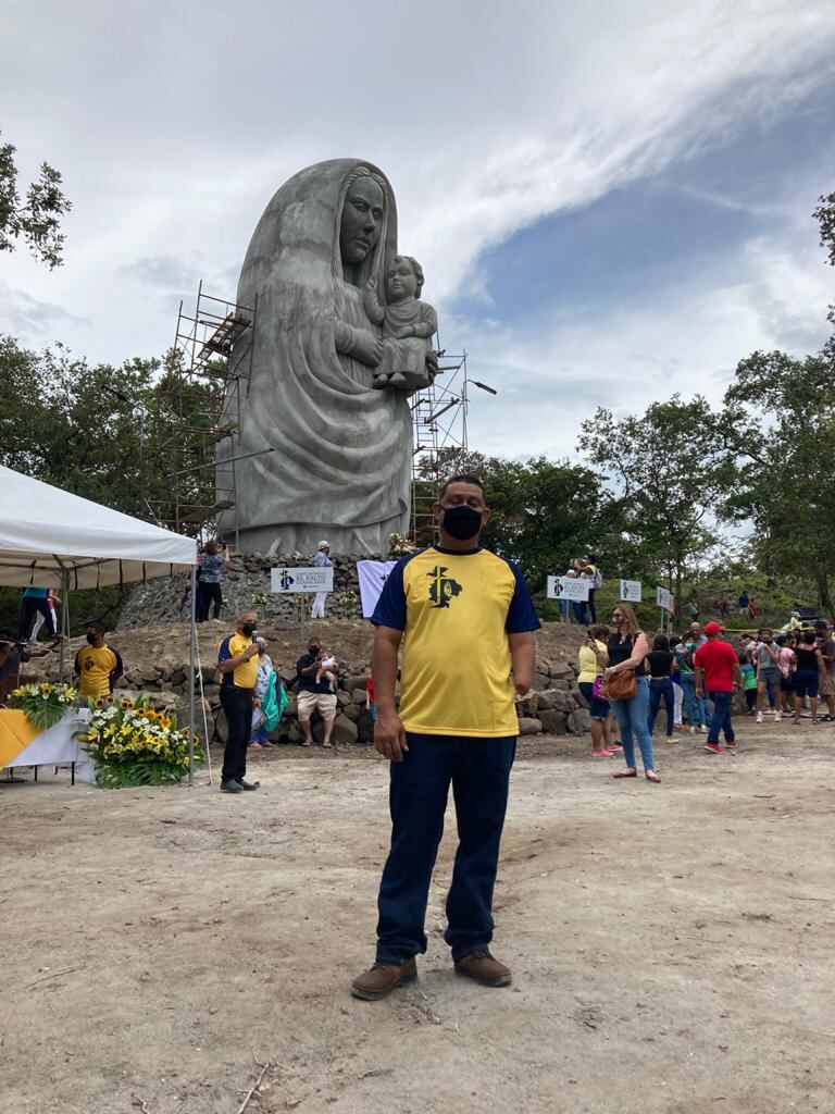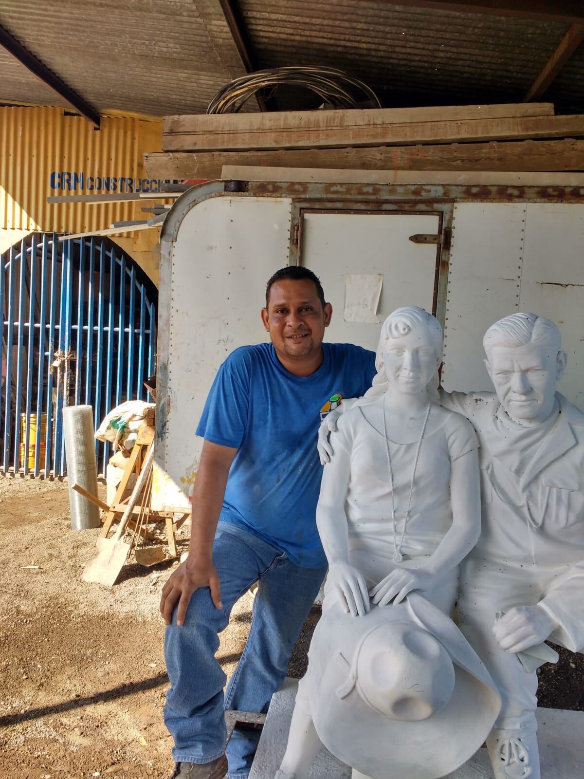 El escultor, de 43 años, primero se instaló en Turrialba. Luego de pasar un año en tierras azucareras pasó a Liberia donde ya dejó huella. Junto a otras 24 personas contribuyó a construir la imagen de la virgen de los Ángeles más grande del mundo (16 m. de altura), en El Salto de Bagaces.