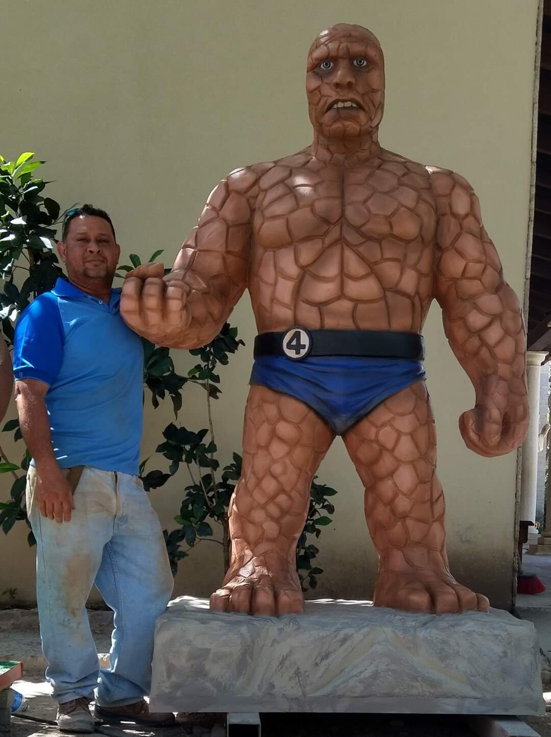Ese es su trabajo más reciente, inaugurado el pasado 2 de agosto, aunque asegura que ya ha hecho más de cien figuras en suelo tico, entre ellas de personajes cinematográficos como Shrek, el hombre de piedra (la Roca), de Michael Jackson, John Lennon o lapas y tucanes.