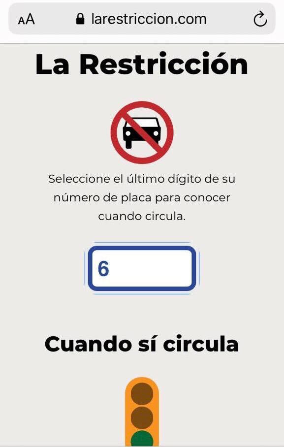 Si usted todavía no ha revisado cuándo podrá andar con su carro en la calle puede meterse a quedeseencasa.anvil.com o en larestriccion.com. Aunque lo mejor es que se quede en casa todo lo que pueda.