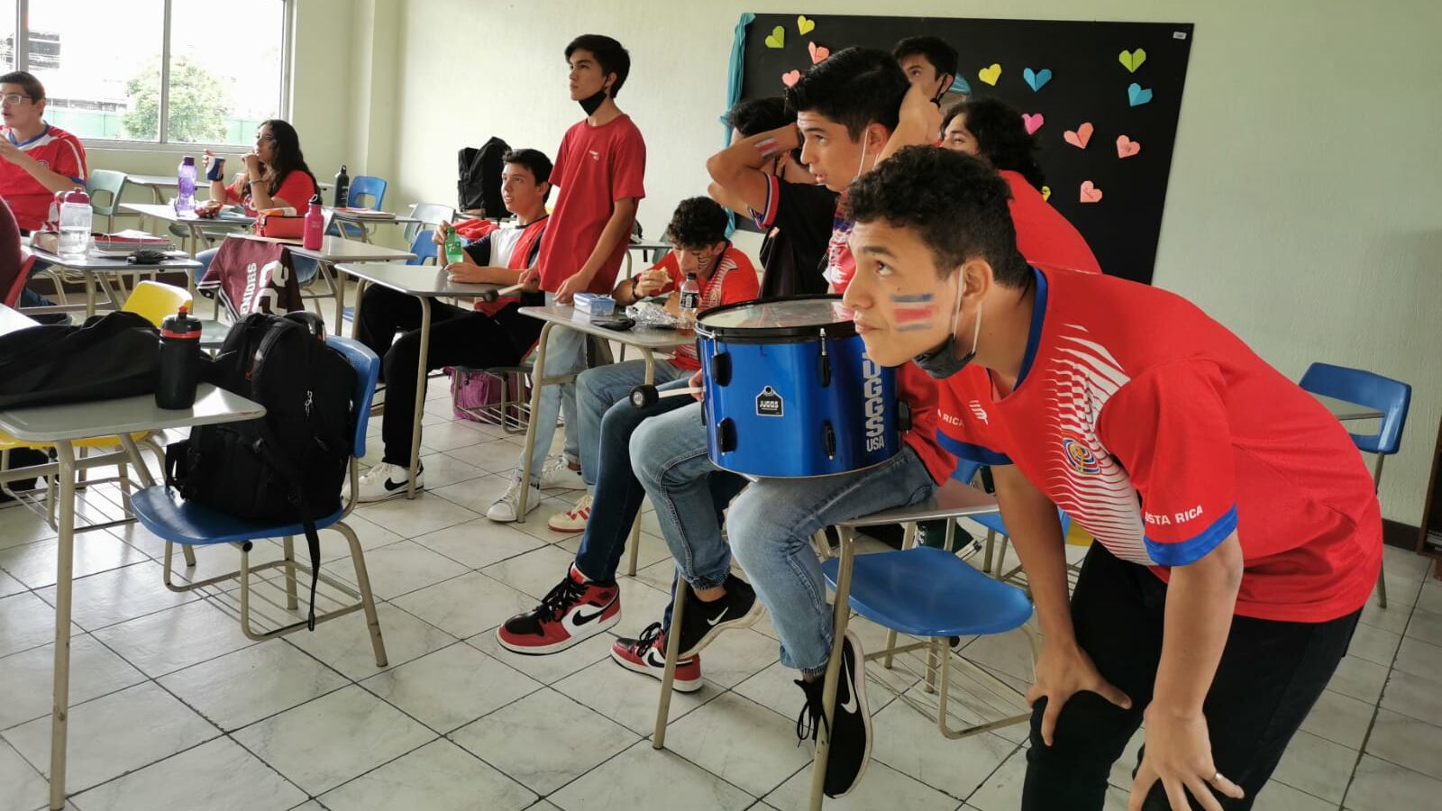 Cuando se inició el encuentro los muchachos estaban con la emoción por las nubes, en el colegio se escuchaban el “oe, oe, oe, ticos, ticos”, cornetas y tambores. La buena vibra sonaba por todo lado.
