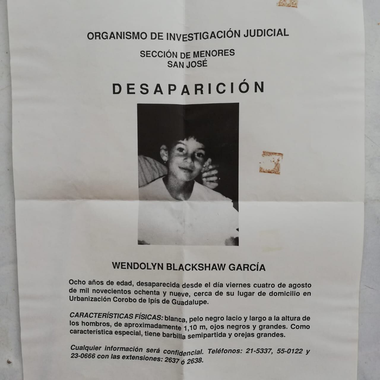 El exagente del OIJ la visitó para confirmarle que se va a meter de cabeza con el caso de la desaparición de Wendolyn, la cual se dio el 4 de agosto de 1989, cuando la niña tenía 8 años.