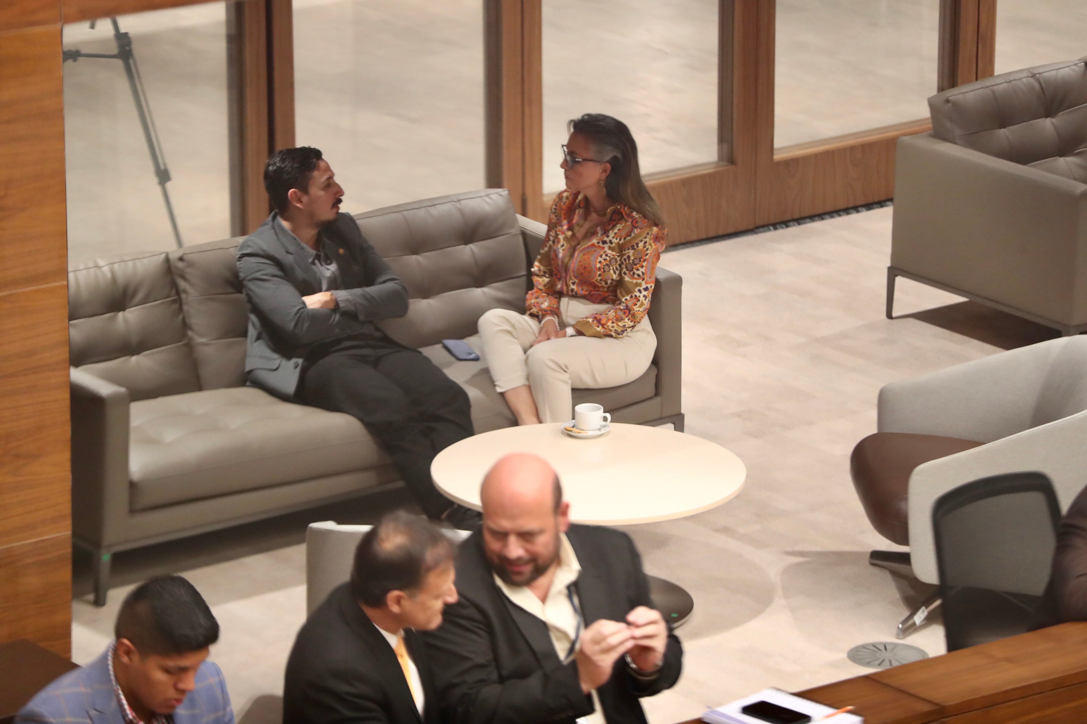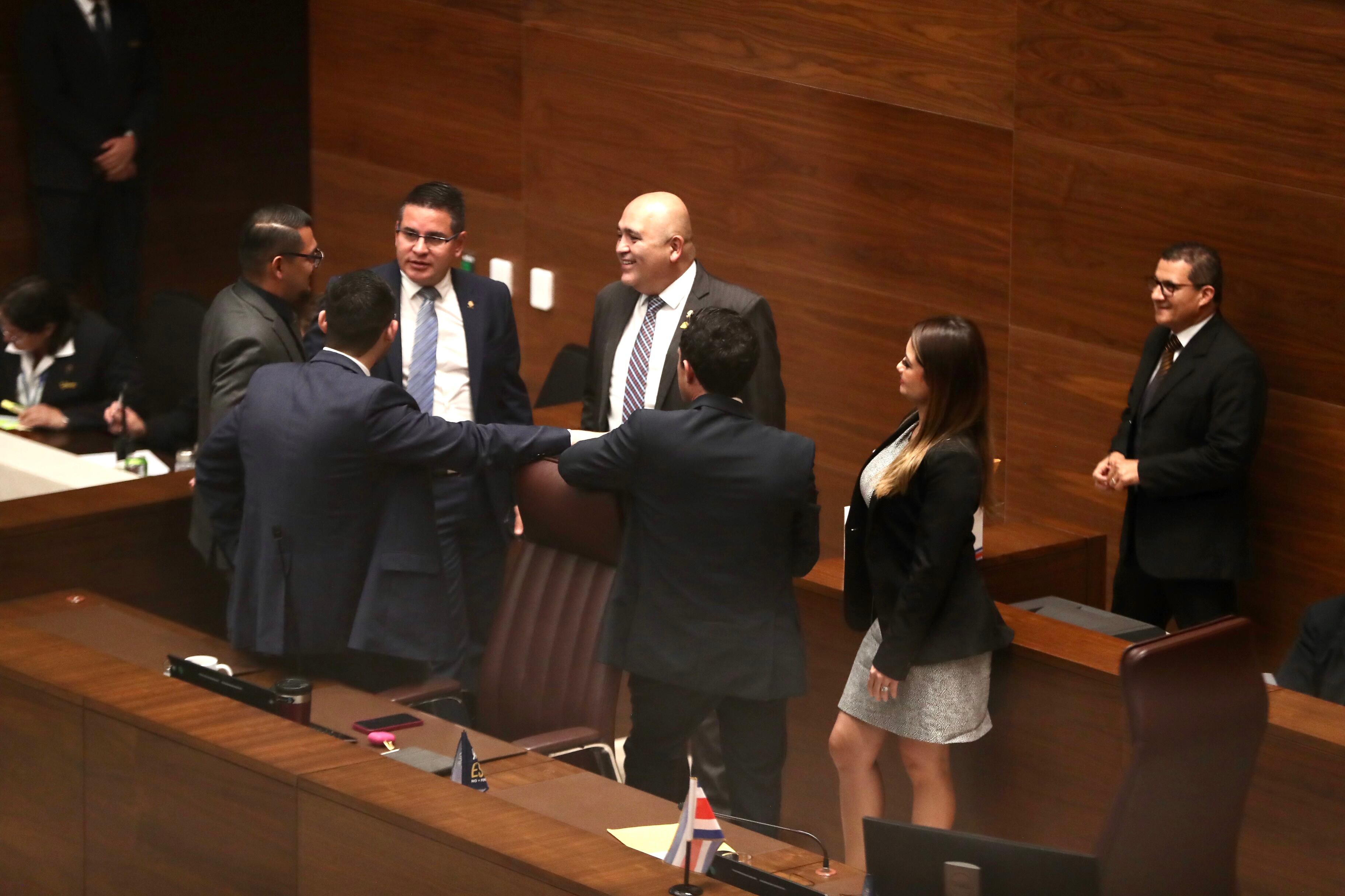 Un grupo de diputados se reunieron cerca de la silla del presidente del Congreso para compartir un rato. Otros conversaban en pareja, entre ellos Ariel Robles y Kattia Cambronero, así como Rodrigo Arias y Pilar Cisneros.