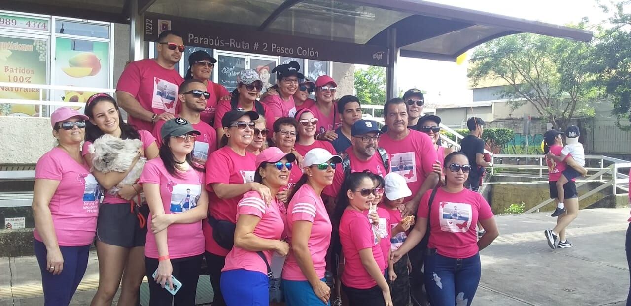 La familia Carvajal Leandro llegó en pelota a la caminata de la Fundación Anna Ross para apoyar a doña Abigaíl, una limonense de 69 años que recibe tratamiento para detener el avance de un tumor que le está invadiendo los huesos.