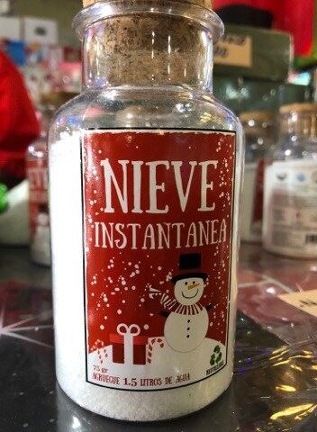 Navegando por internet vimos que esta “nieve” lo que contiene son polvos de poliacrilato de sodio, los cuales son capaces de absorber hasta mil veces su volumen en agua, dando un aspecto de nieve artificial una vez que ha absorbido todo el líquido. Estos polvos son el componente que se utiliza para pañales de bebé y compresas.