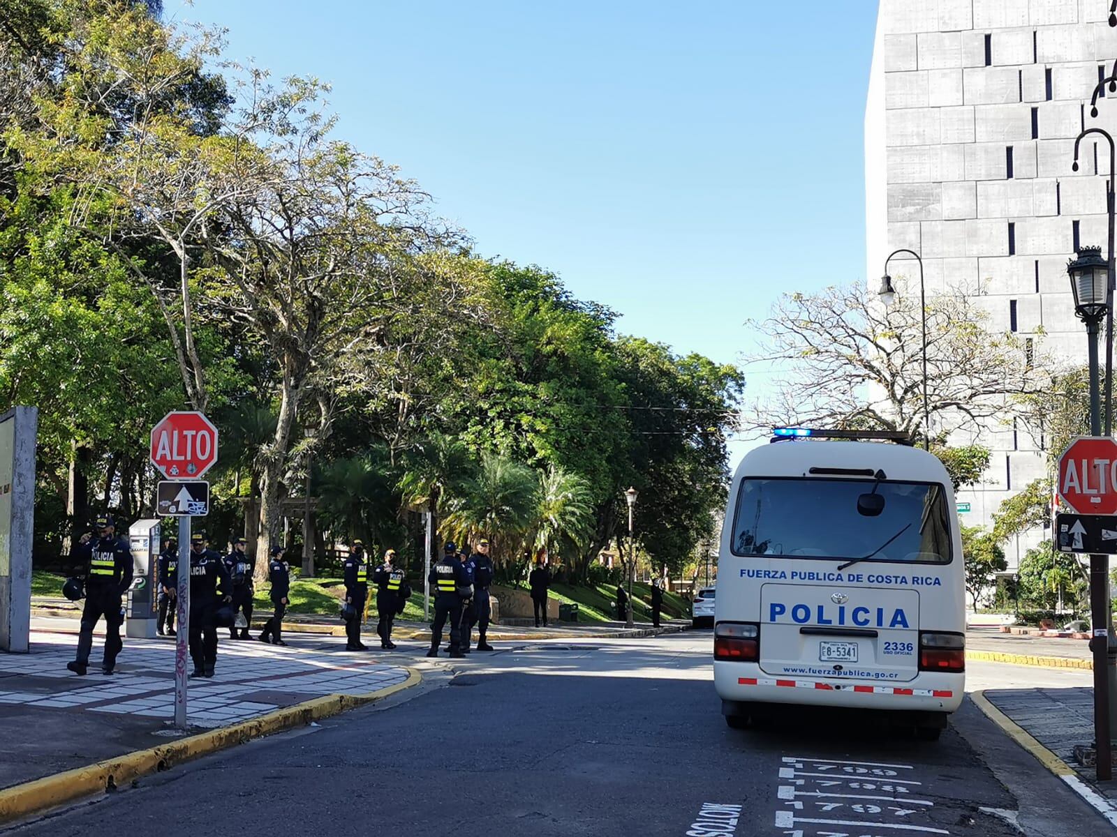 Las autoridades de Tránsito y Fuerza Pública acordonaron un perímetro de 300 metros alrededor de la Asamblea Legislativa.