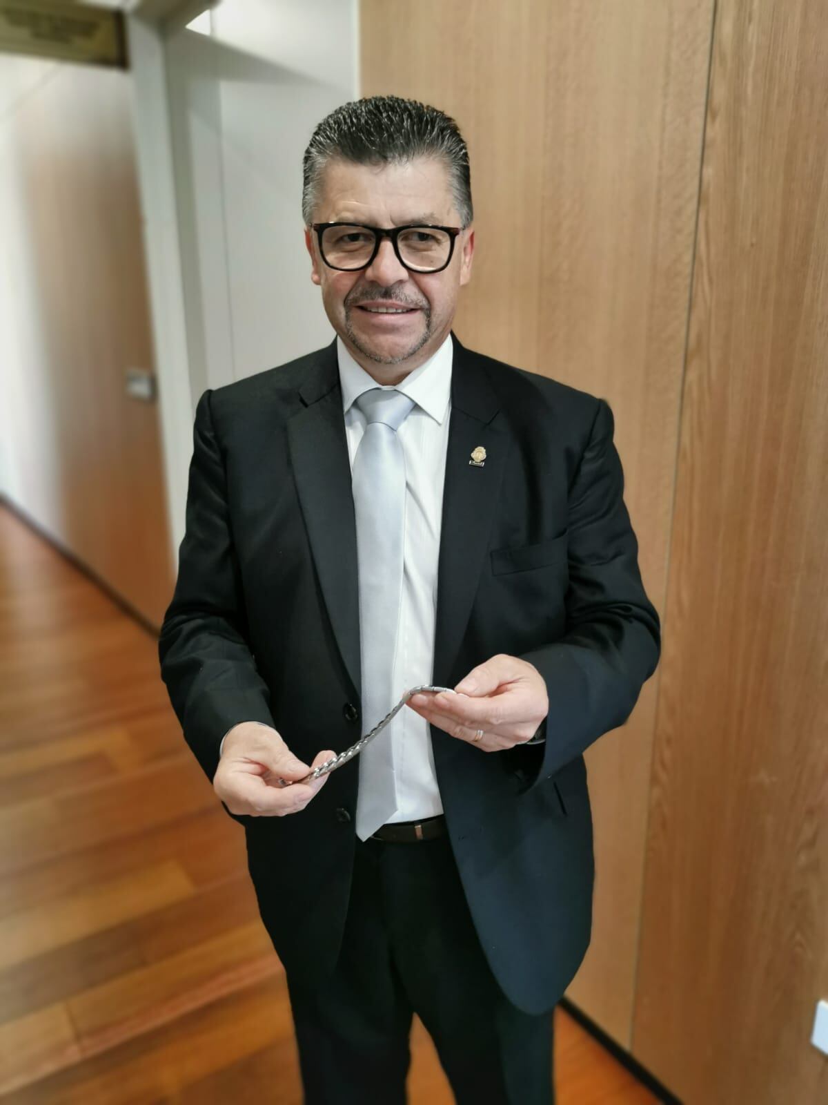 El diputado Gilbert Jiménez, del Partido Liberación Nacional, llevó este 1 de mayo a la Asamblea Legislativa un traje negro nuevo, con una corbata plateada, apegándose al protocolo de la Asamblea Legislativa.