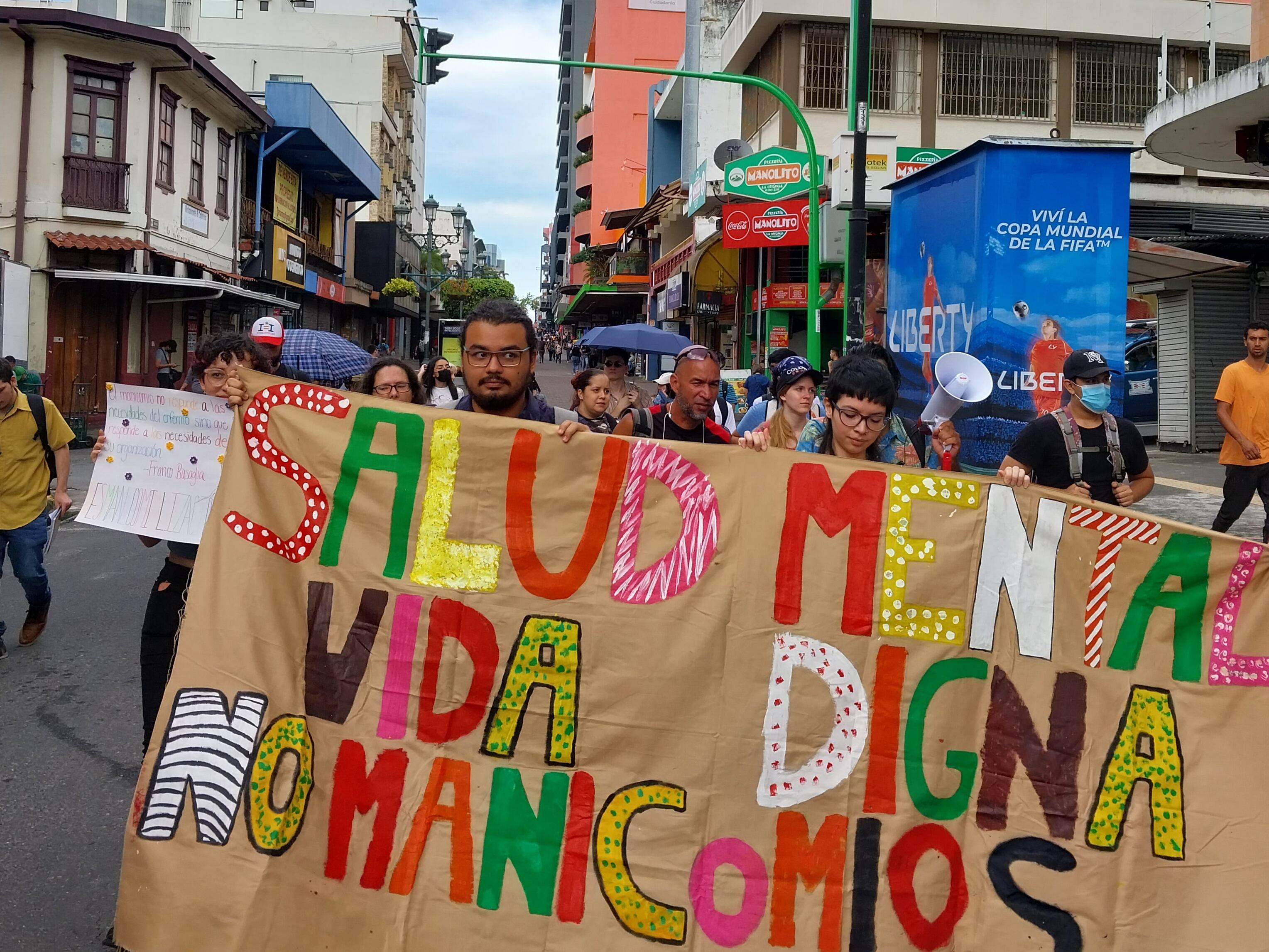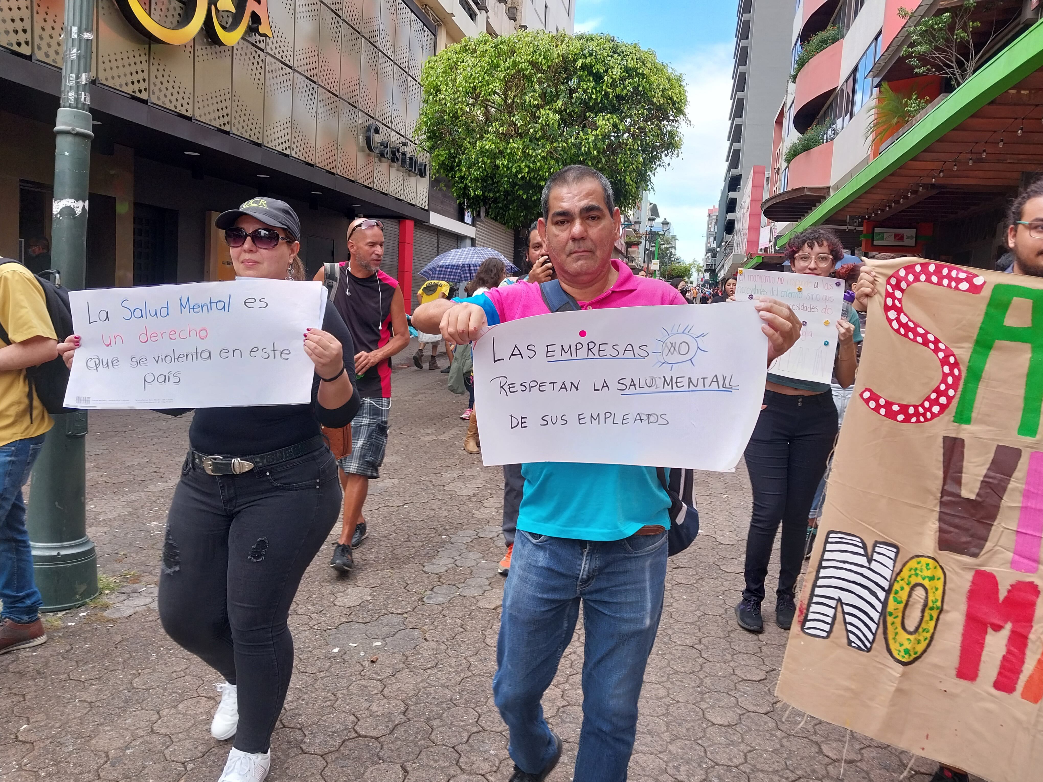 Los colectivos Podemos Volar, Trascendentes, y la Asociación Desampa Inclusivo y la Escuela de Psicología de la UCR realizaron una marcha con pancartas llenas de mensajes para llamar la atención sobre la importancia de cuidar la salud mental.