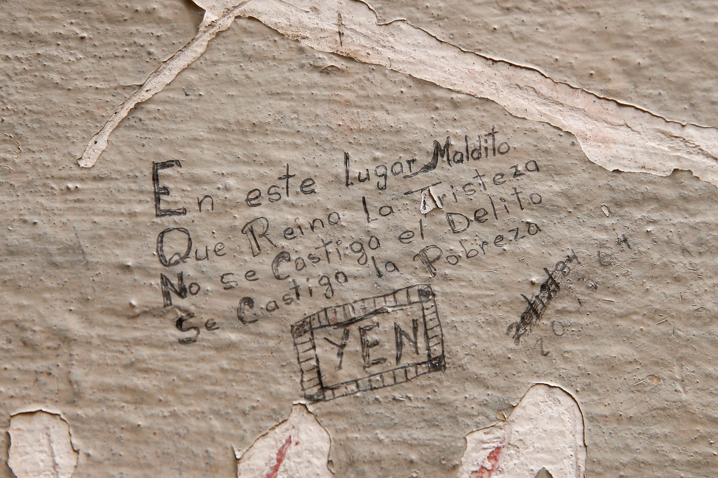 “En este lugar maldito, que reina la tristeza, no se castiga el delito, se castiga la pobreza”. No sabemos cuándo se escribió esa frase, pero en este corto mensaje, su autor, quien se identifica solo como Yen, logró inmortalizar su sentir durante el tiempo en el que estuvo como privado de libertad en la cárcel de la isla San Lucas.