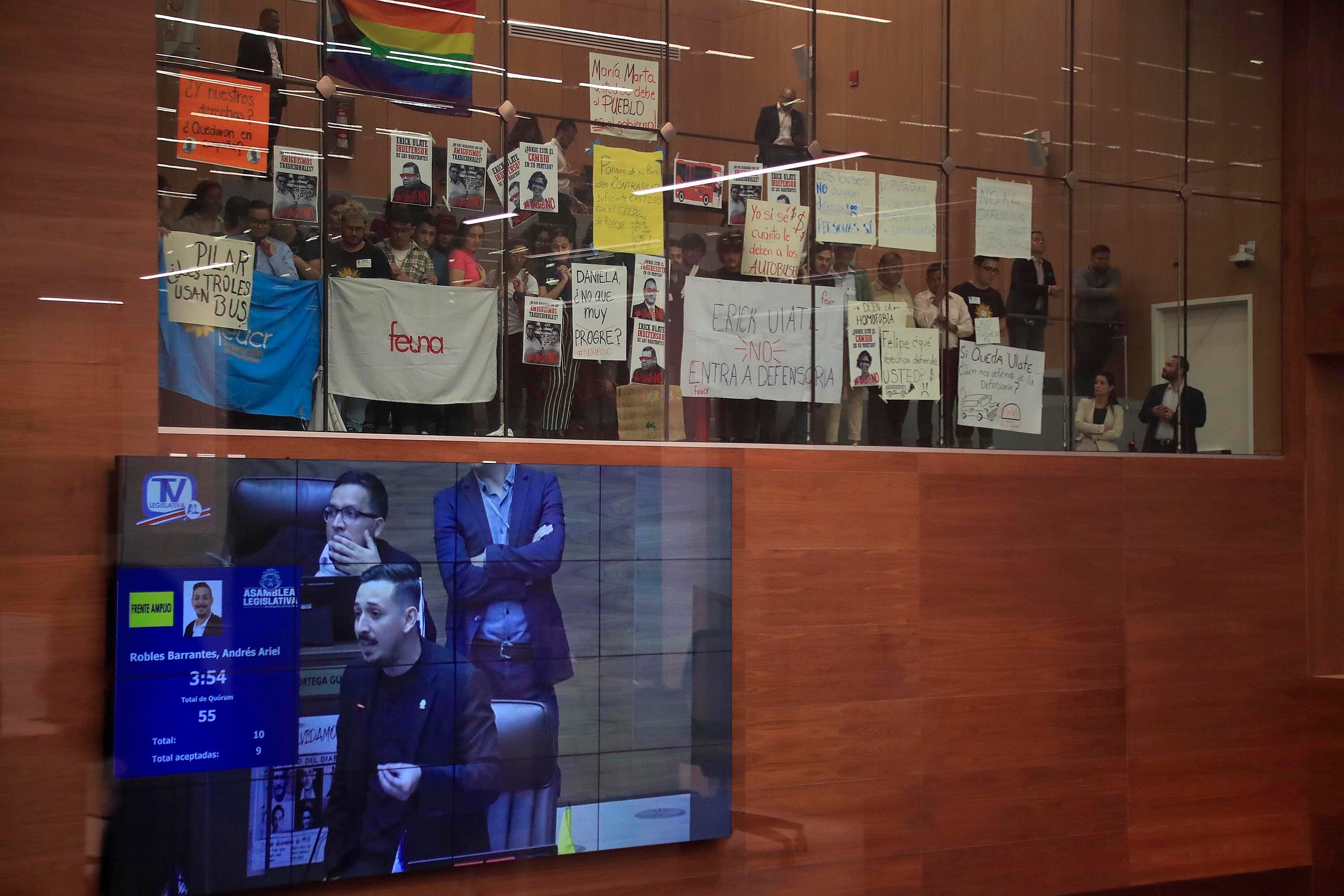 “Durante las sesiones, está jefatura se ve obligada a reforzar esta área con un mínimo de cuatro agentes de seguridad, que son pocos, en caso de tratar de controlar un grupo violento que intente introducirse al resto del edificio, situación que se agrava aún más dado que el personal de seguridad no estaría disponible para brindar apoyo de seguridad a la barra de público, por encontrase sesionando las comisiones legislativas, ya que lo agentes están destacado en el área de comisiones.