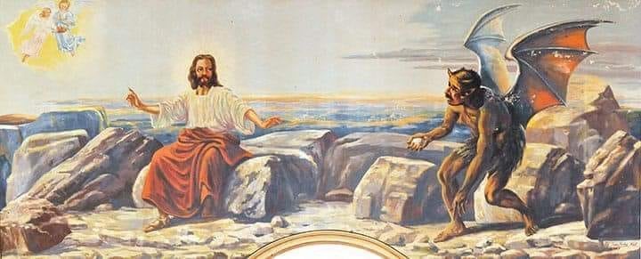 En el templo del que hablamos hay un mural que representa a Jesús cuando estuvo en el desierto durante 40 días y 40 noches soportando todo tipo de tentaciones. Al lado de Jesús aparece el demonio, cuya cara llama mucho la atención porque parece calcada de la de Ortega, lo cual no es ninguna ganga, pero es la realidad.