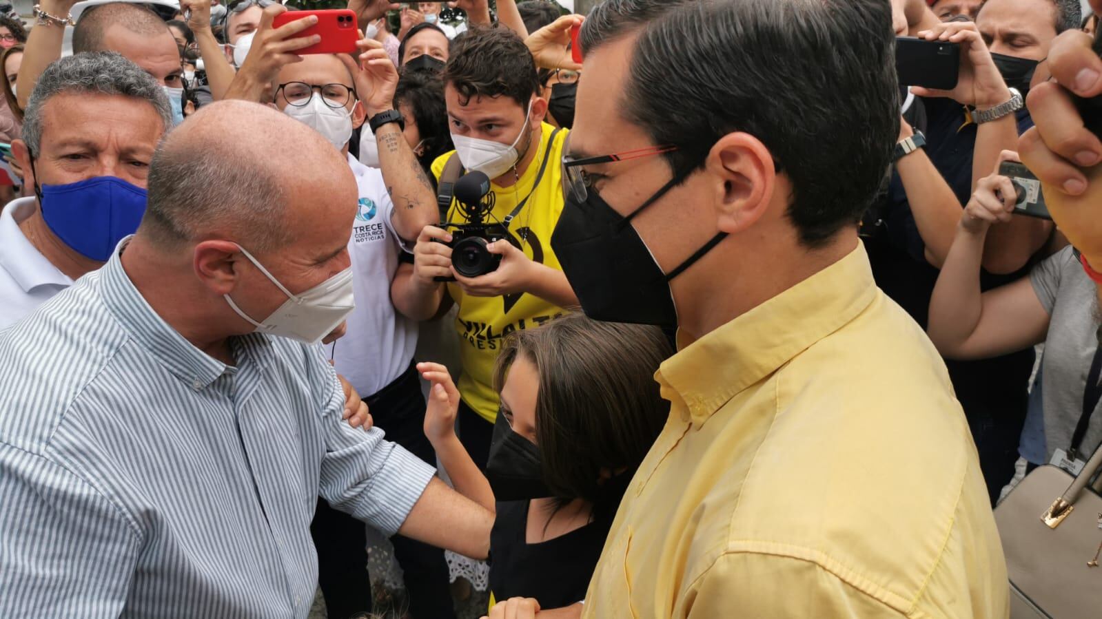 Los hijos de Villalta se emocionaron al toparse con el aspirante del Partido Liberación Nacional, José María Figueres, quien acompañó a votar a su nieto Pepe, de 5 años.