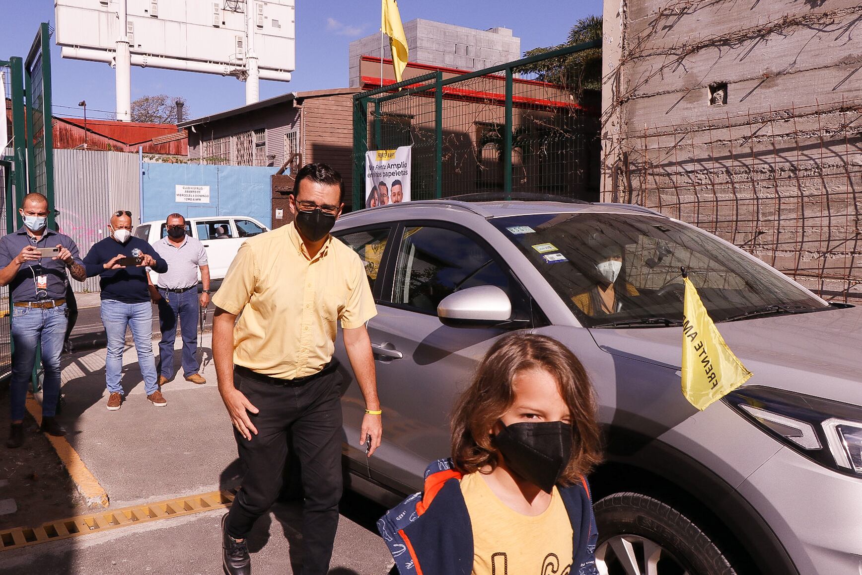 Una de sus primeras actividades del domingo fue desayunar con su esposa y sus dos hijos y luego ir a votar. Más tarde, a eso de la 1 p.m., cuando acompañó a sus pequeños al Colegio de Periodistas, donde se celebran elecciones infantiles, ocurrió algo muy llamativo y propio de la fiesta democrática que celebra Costa Rica cada cuatro años. .