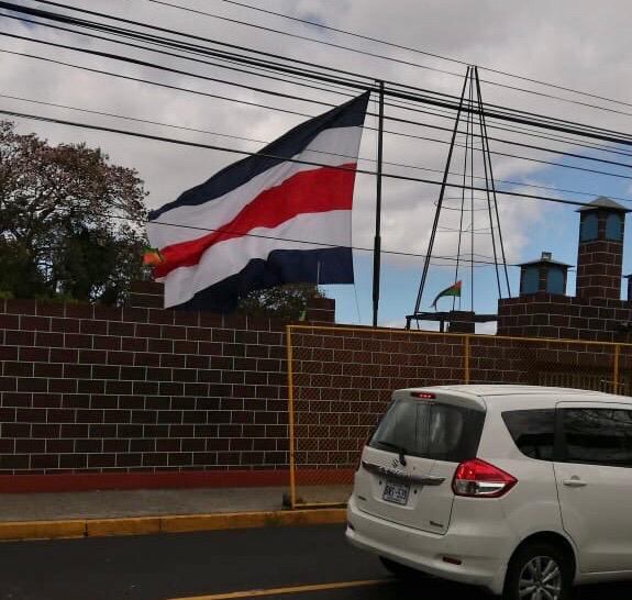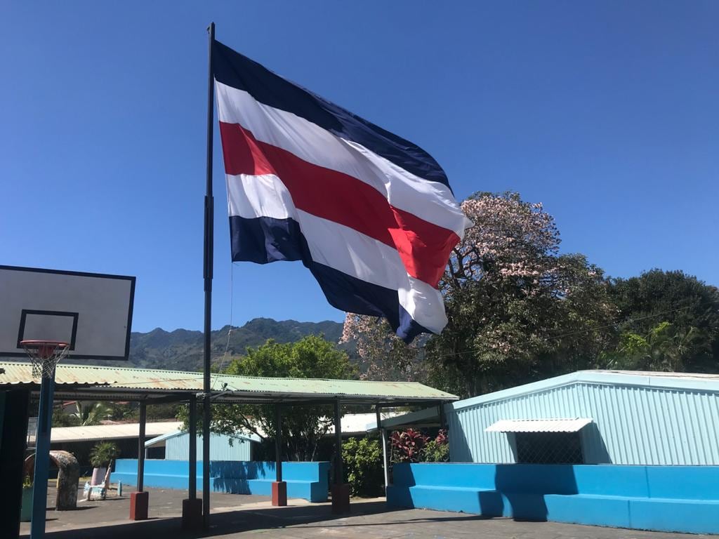En la escuela República del Paraguay, en Hatillo centro, pusieron hace unas semanas una bandera de Costa Rica enorme en su patio principal, se ve por todo lo alto tanto dentro como desde fuera del centro educativo. Pero dicho símbolo nacional tiene un error.