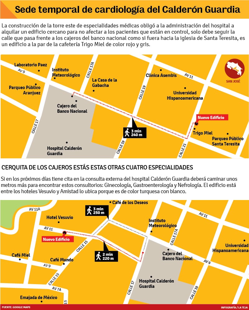 Los pacientes de Consulta Externa del hospital Calderón Guardia pueden estar contentos de que ahora los atienden en algunas especialidades en lugares más cómodos, pero a la vez deben volar chancleta por las calles de los barrios Aranjuez y Amón para llegar a las citas.