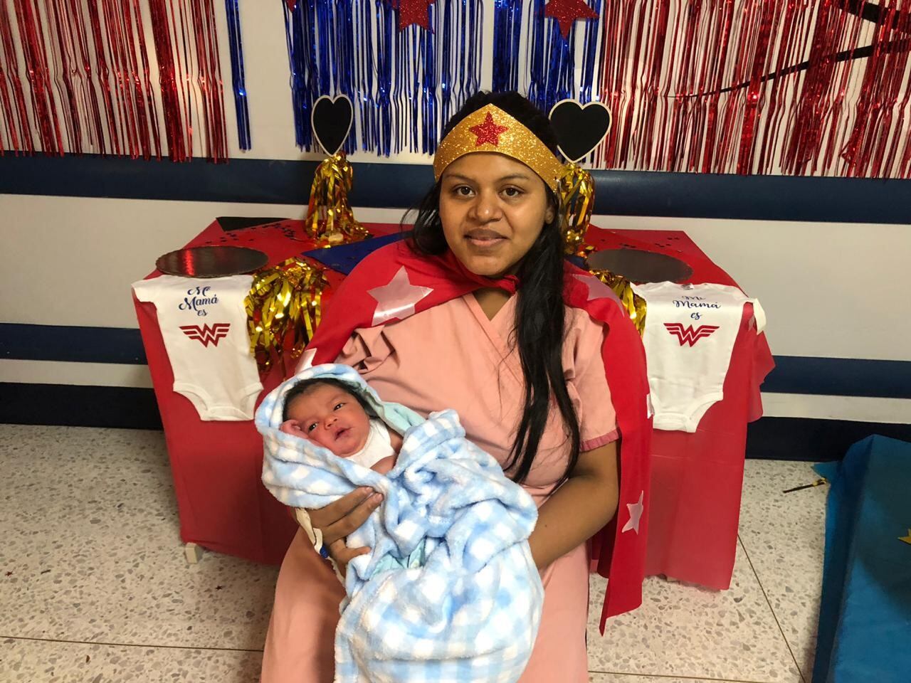 Cada uno de los niños que nacieron este 14 y 15 de agosto recibieron un mameluco con el símbolo de la Mujer Maravilla en honor a las supermamás que les dieron la vida.