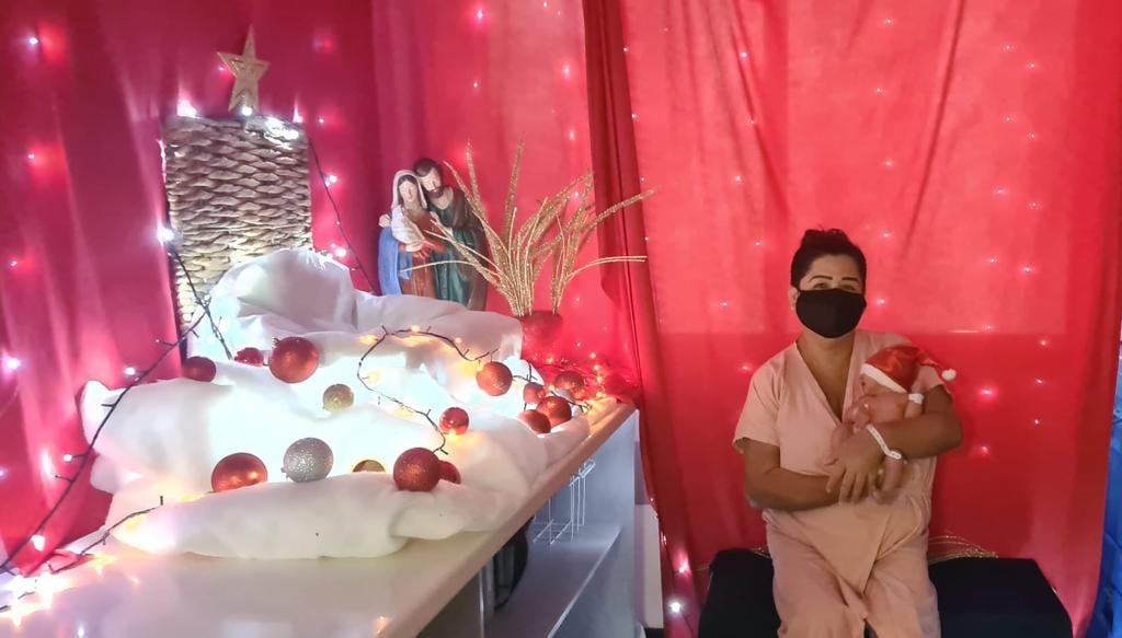En el hospital de Puntarenas también decidieron celebrar a los recién nacidos, pero de una forma diferente, ahí el personal médico hizo un portal en el que las mamás de los recién nacidos los presentan al Señor como gesto de agradecimiento por la bendición recibida.