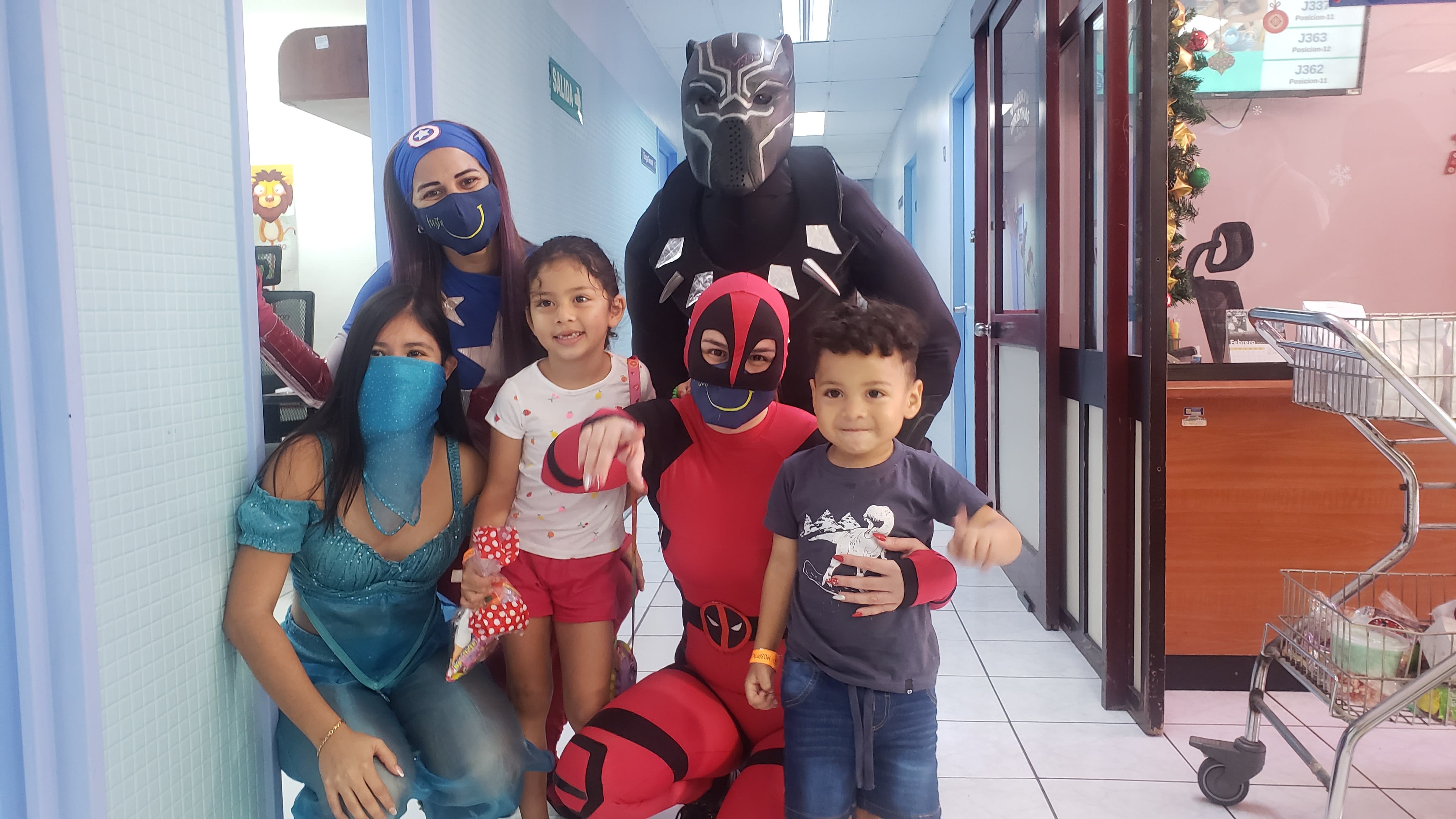 Los niños que son atendidos en el hospital de Puerto también celebraron. Varios personajes, que representaban superhéroes, llevaron entretenimiento a 50 pequeños y sus mamás, además estos recibieron regalos. La empresa privada colaboró con la participación de estos personajes.
