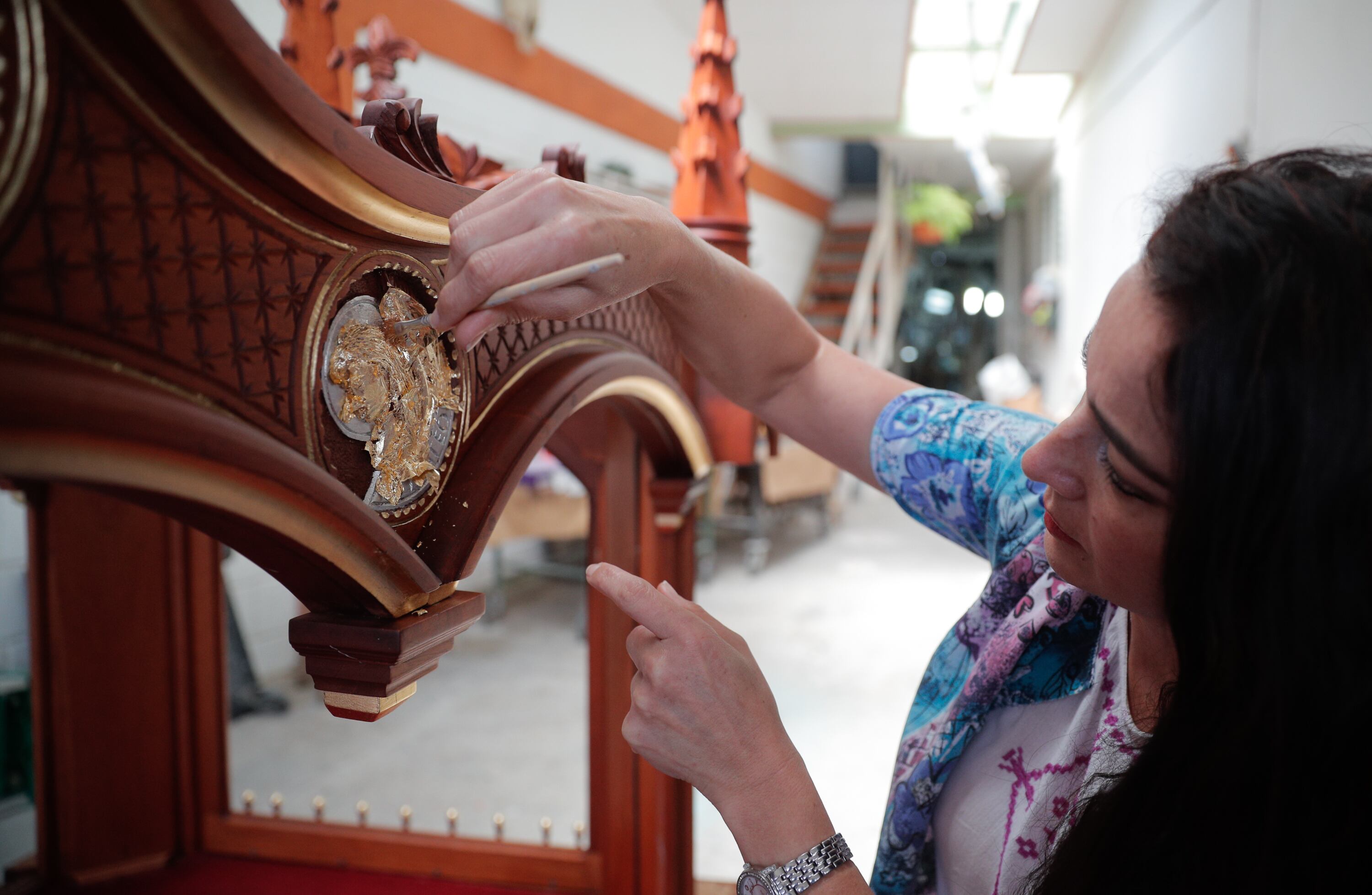 Además colocaron los recubrimientos de oro en los relieves de los evangelistas que hay en el “techo” de la urna. Esa labor sí es responsabilidad de Jéssika, quien estudio arte en la Universidad de Costa Rica.