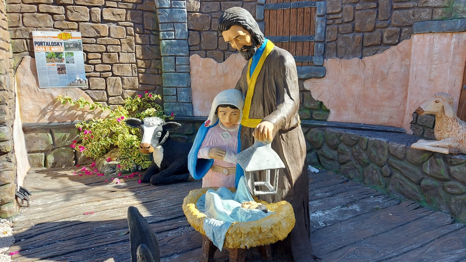 Como el padre no se queda quedito, al portalote que inauguraron en el 2020, con las figuras principales de la Sagrada Familia, el Niño Dios y el pesebre, este año ampliaron el proyecto en la que se ve a Jesús compartiendo su palabra en su vida adulta con dos muchachos y dos niños que lo escuchan atentamente.