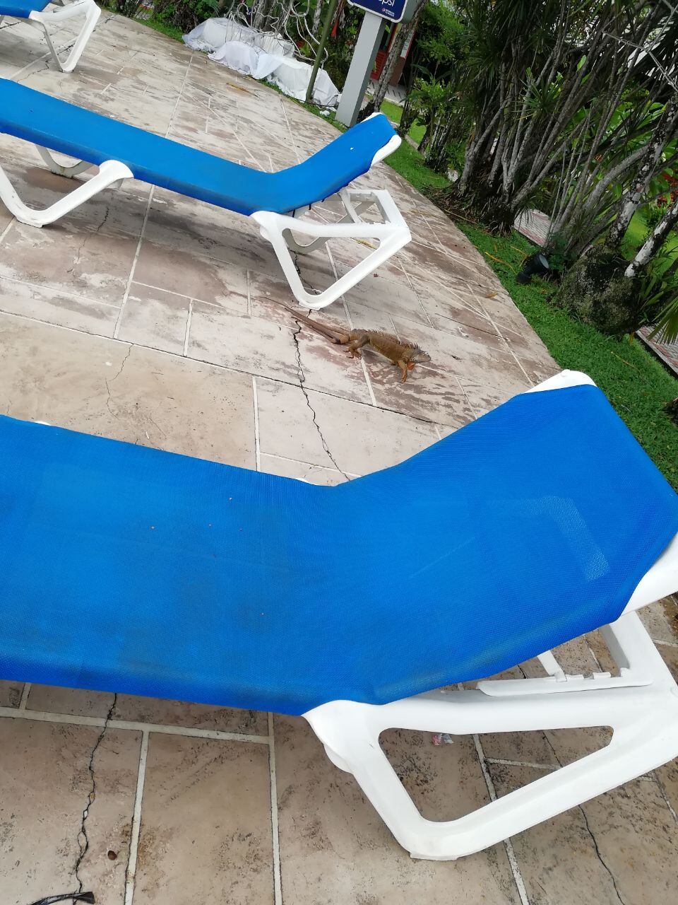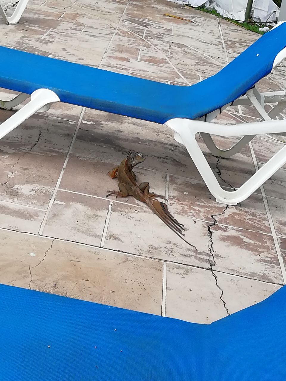 El extraño animalito caminaba como si nada cerca de la piscina del hotel Suerre, ubicado en ese cantón limonense. Tal vez buscaba un buen lugar para que le dieran los rayos del sol.