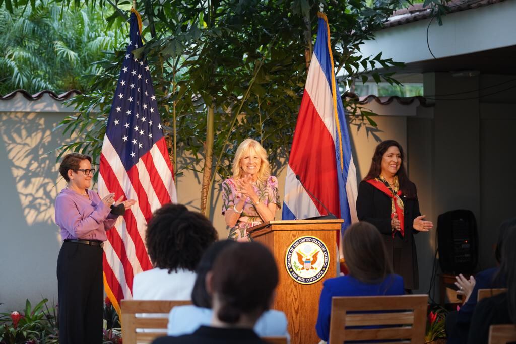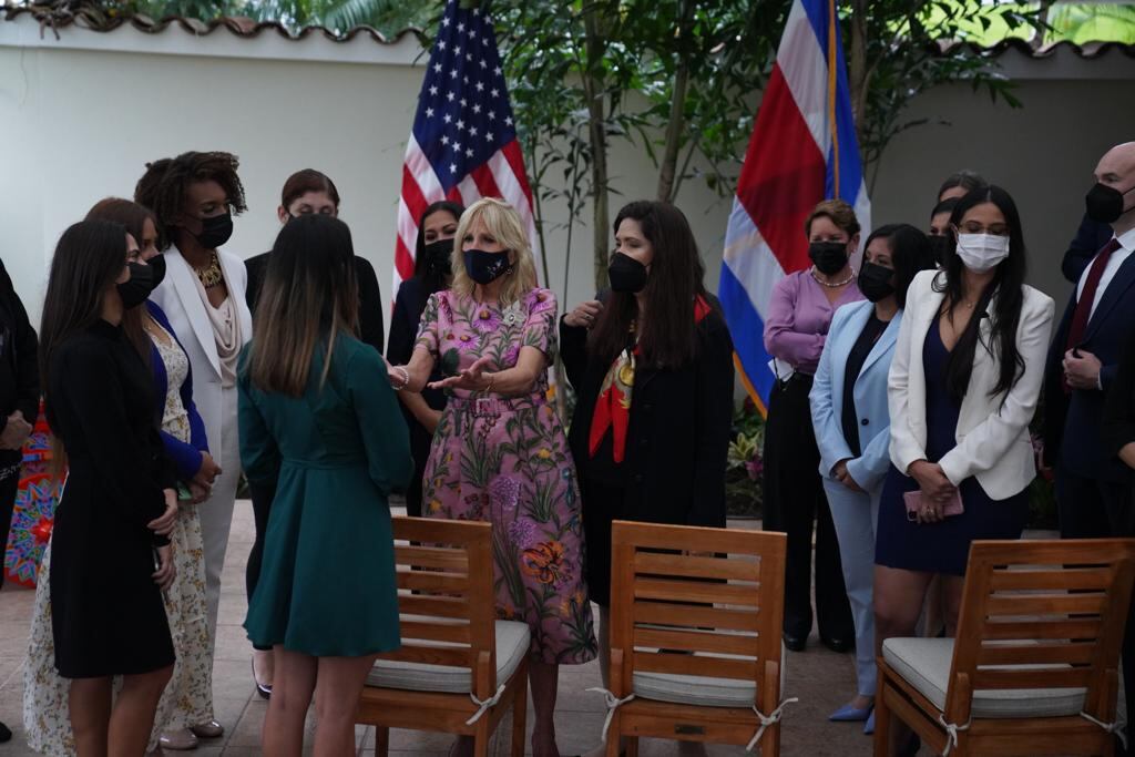 En aquel encuentro, la señora Biden motivó a las jóvenes a estudiar para convertirse en profesionales y a aprovechar al máximo el programa de carreras relacionadas con las ciencias, tecnología, ingeniería, artes y matemáticas (STEAM, por sus siglas en inglés), que da la Embajada de Estados Unidos y del que eran parte.