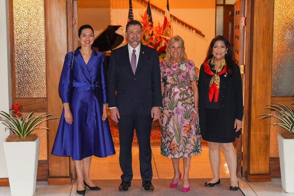 En el recibimiento también estuvieron presentes las costarricenses Stephanie Loaiza Sánchez, Ericka Brenes Luna, Verónica Sánchez Arguedas y Carla Gómez Carrasquilla, quienes participaron en un encuentro con Jill Biden durante su visita a Costa Rica en 2016, cuando era segunda dama de Estados Unidos.