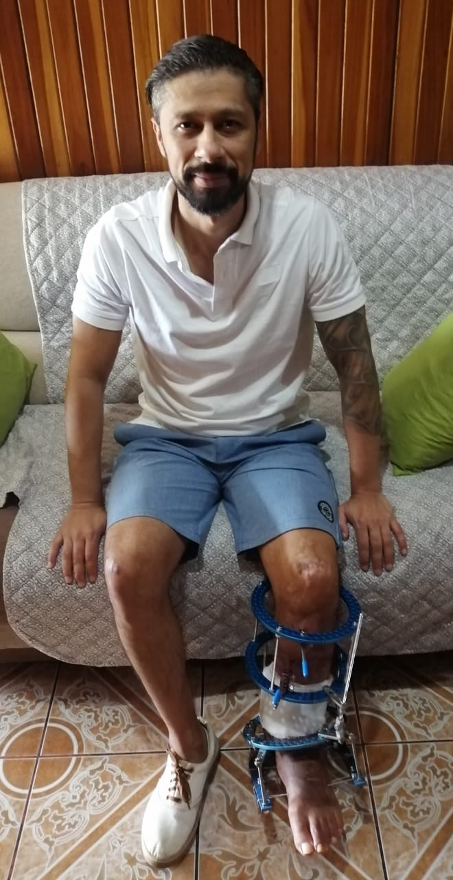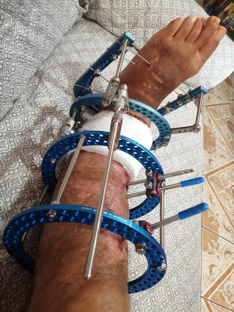 El paciente dice que debido al suceso su tibia quedó más corta y en la operación de esta semana le volvieron a quebrar el hueso y le pusieron unos fijadores externos para guiar la tibia mientras se regenera.