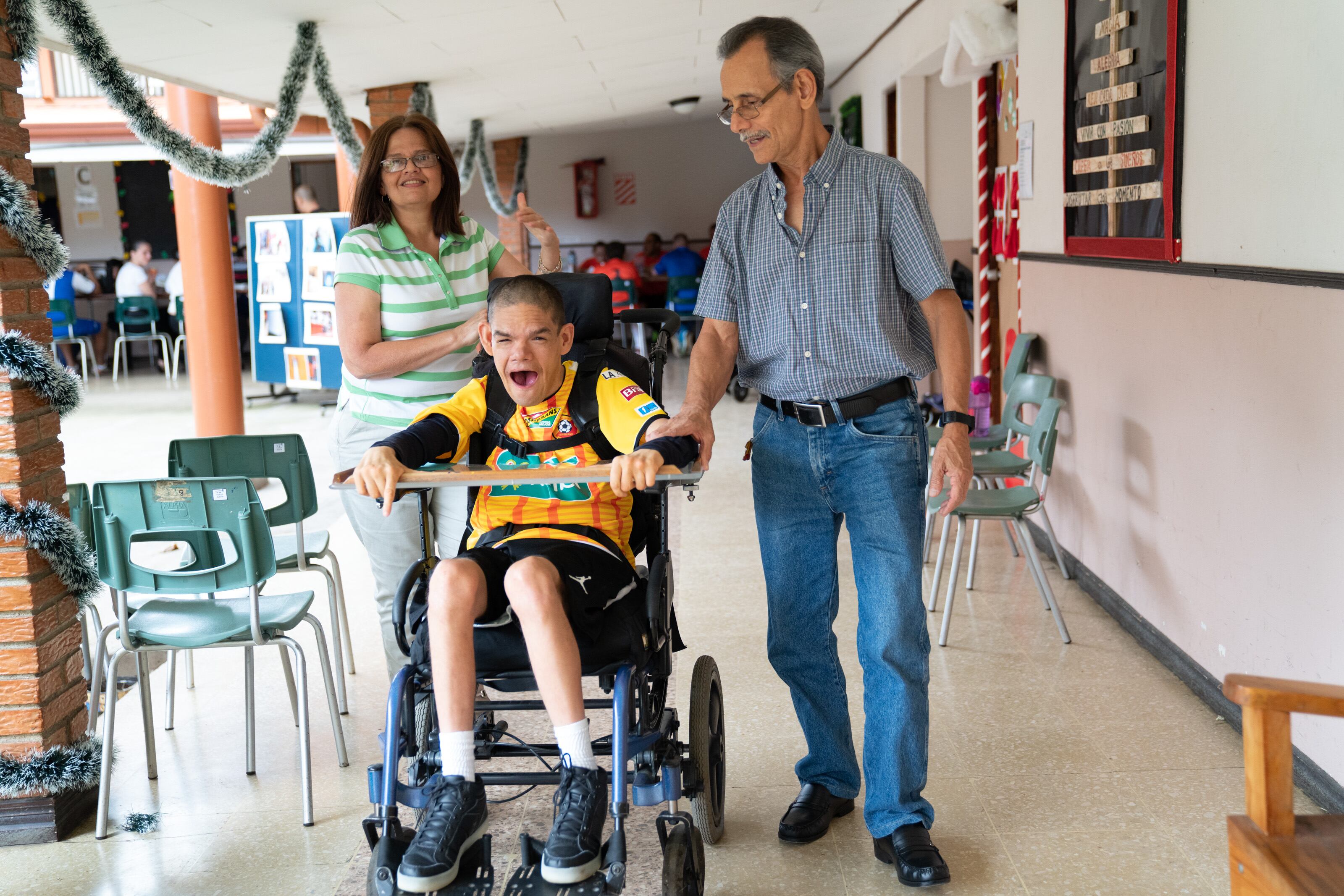 Doña Ivannia explicó que en la fundación se preocupan hasta por las necesidades básicas de él en el hogar, como el coche para movilizarlo, que tenía un costo muy alto y que ellos se lo tramitaron y diseñaron específicamente para él.