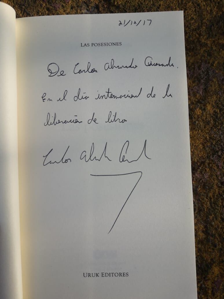“De Carlos Alvarado Quesada. En el día internacional de la liberación del libro”, escribió el presidente en la primera hoja de la obra.