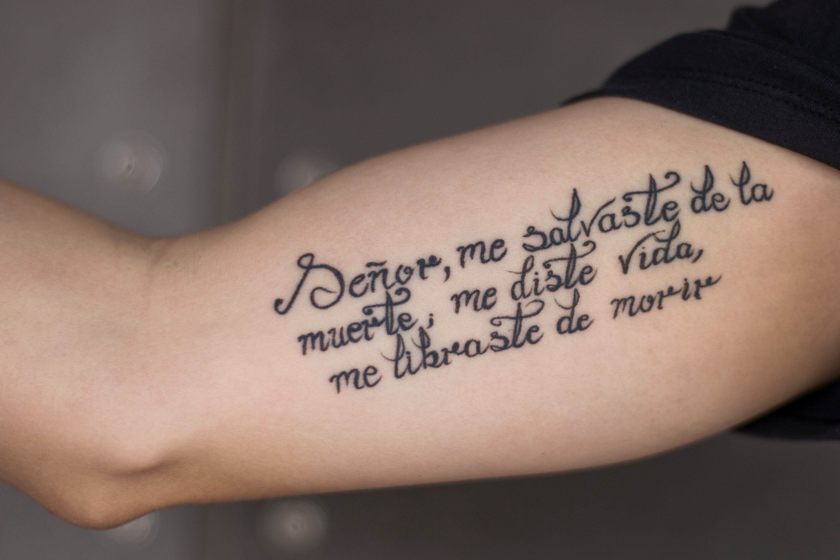 Cuando le volvieron a decir que todo avanzaba pura vida llegó el otro tatuaje en la piel, ese es más reciente, es del 2018. “Señor, me salvaste de la muerte, me diste vida, me libraste de morir”, se puede leer en su brazo derecho.