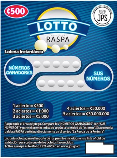 La Junta de Protección Social (JPS) anunció este jueves 17 de agosto que ya está a la venta un nuevo juego de lotería instantánea, que se llama Lotto-Raspa y que tiene un premio sabrosísimo de ¢30 millones.
