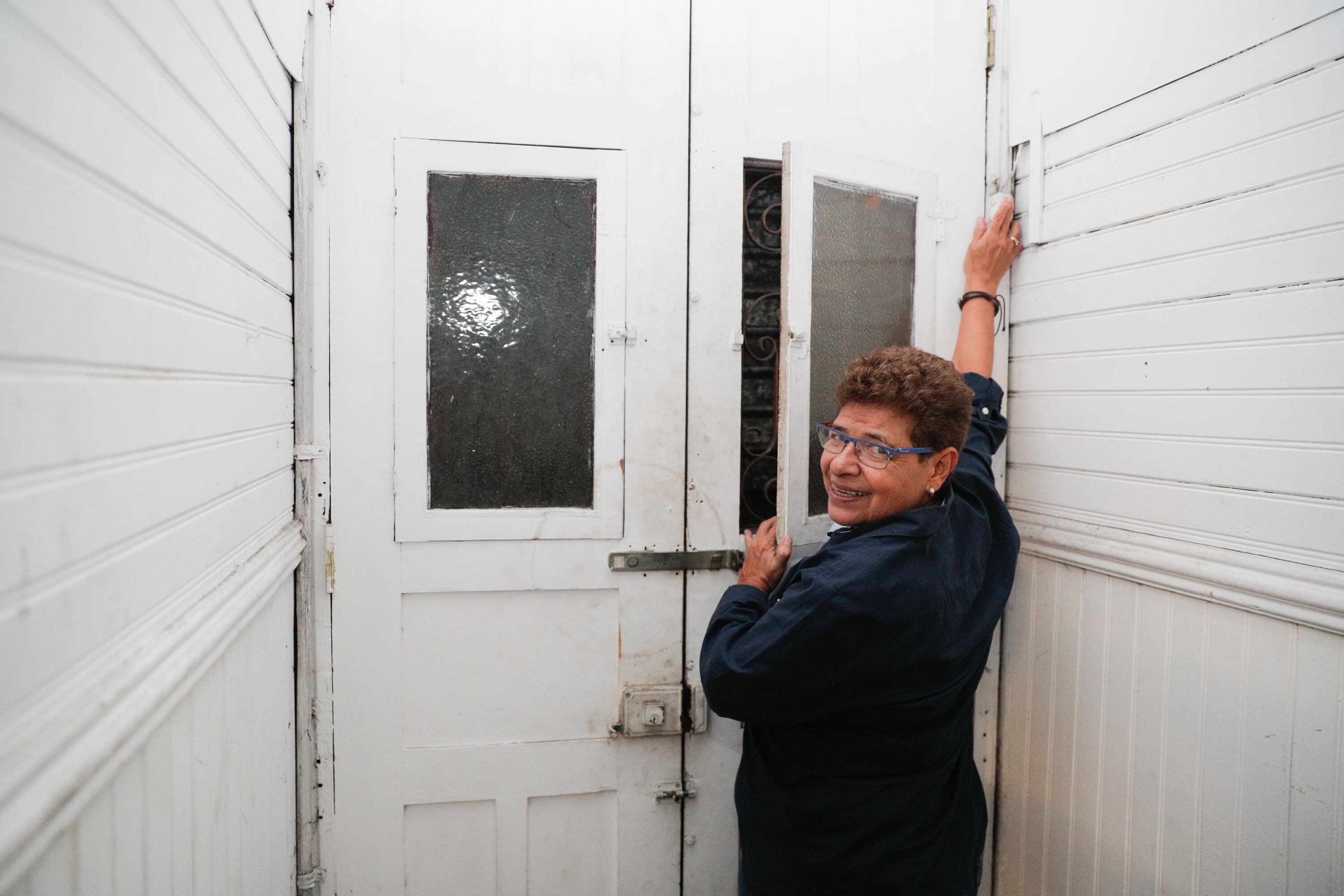 Vega nos mostró el pasillo por donde se entraba al bar cuando se abrió. Es un camino estrecho y aún se conserva en la puerta una pequeña ventana, donde ella veía a quién dejaba entrar y si era la policía, encendía la luz blanca, cuyo apagado se ubica al lado derecho de la puerta.