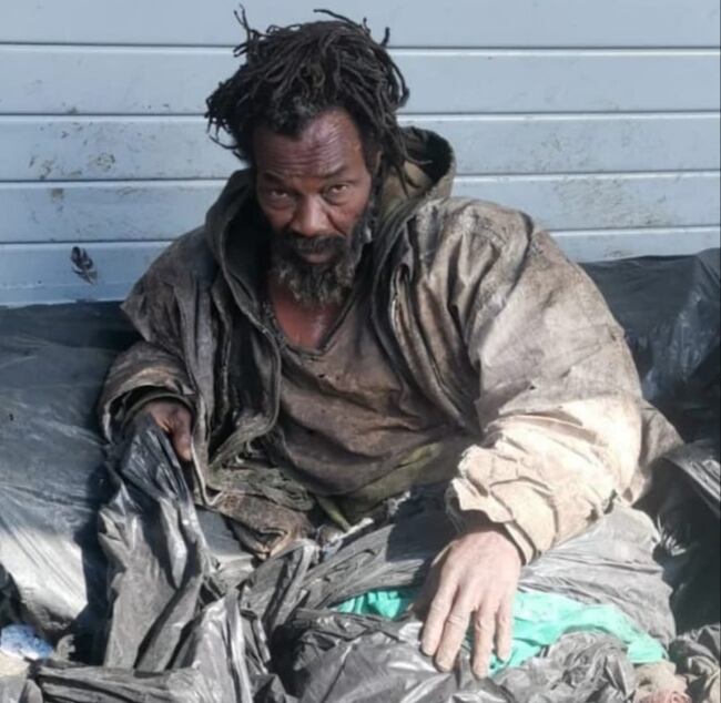 Petróleo es un limonense que tiene ahora 68 años. En el 2016 se acomodó en una acera de la zona roja y no se levantó más hasta que llegó don Mauricio, con su gente, en el 2022. En esa acera comía, hacía sus necesidades físicas y dormía, siempre lleno de bolsas de basura.