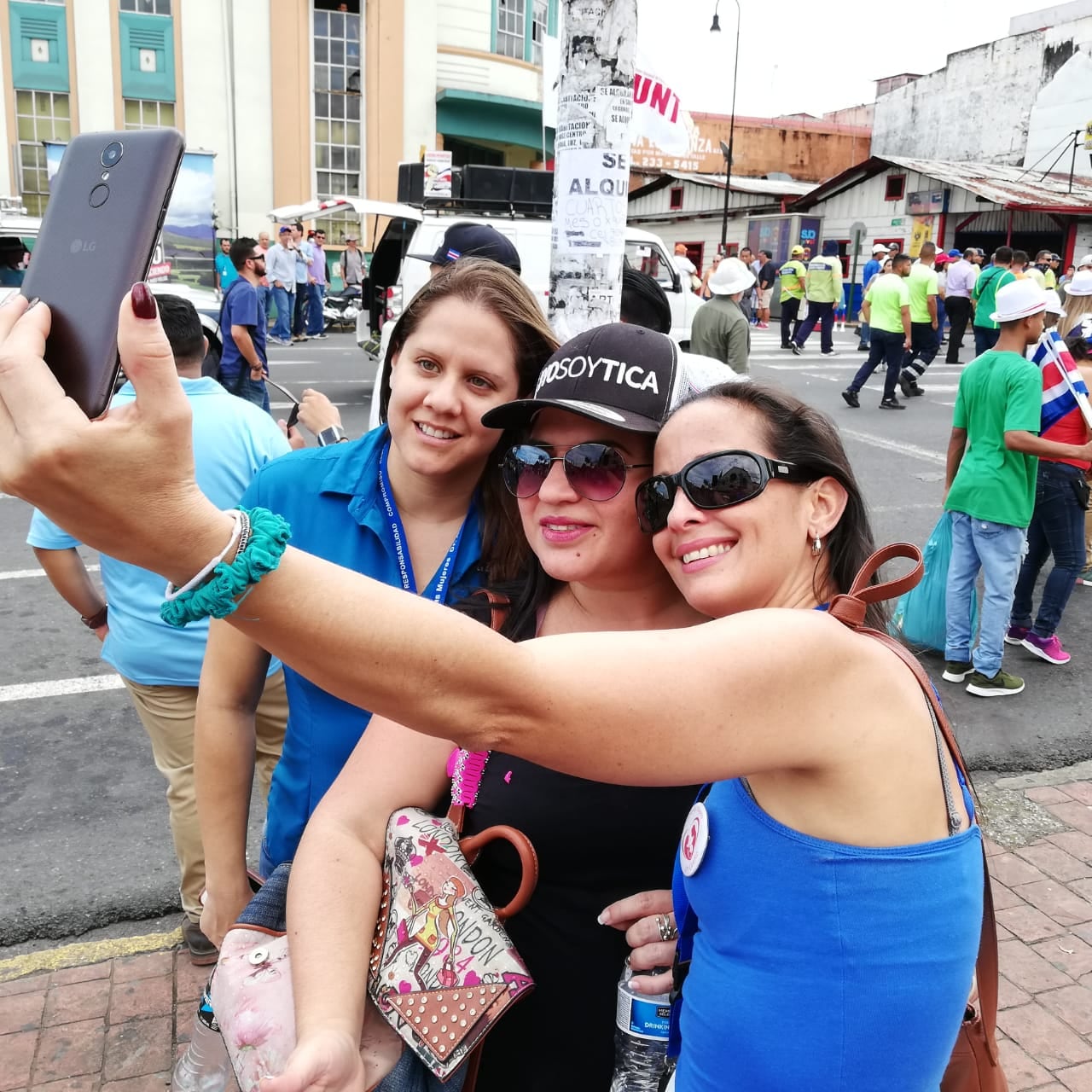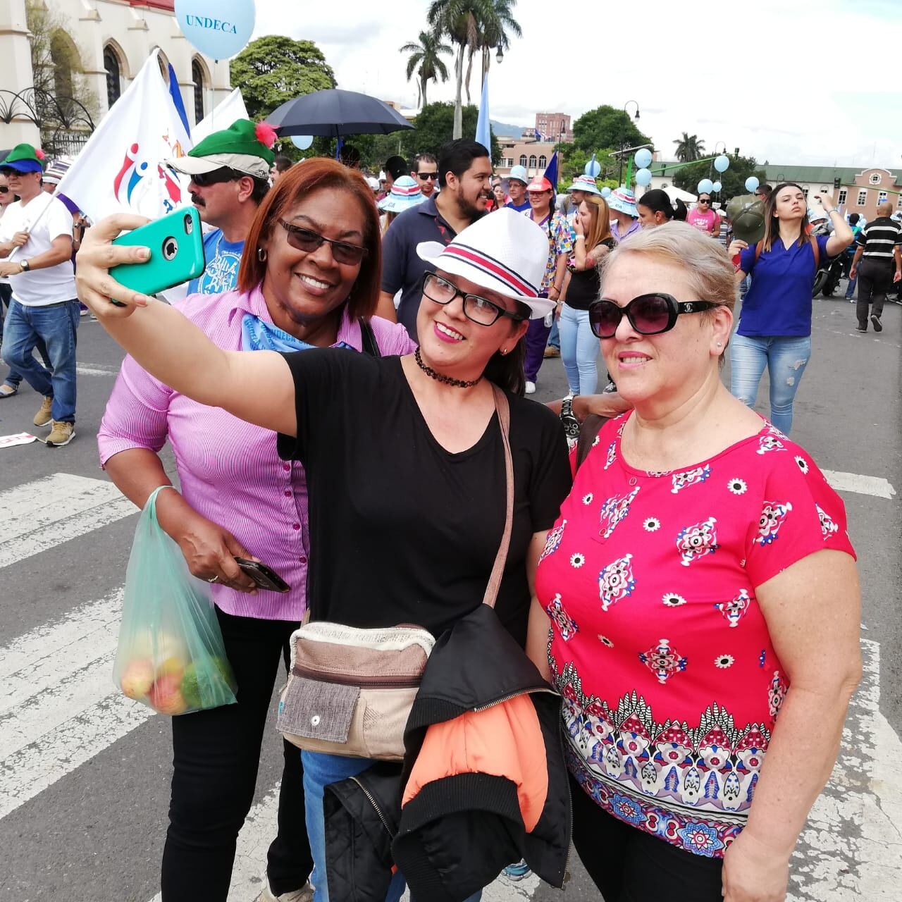 “Ni un paso paso atrás”, gritaban los líderes sindicales, mientras cerca se escuchaba: “Ahora sí, quédese queditica, no dé ni un paso porque esta tiene que ser la foto buena”, comentaba Roxanna Hernández, quien junto a Shirley Sánchez y María Brown, se tomaron un precioso selfi.