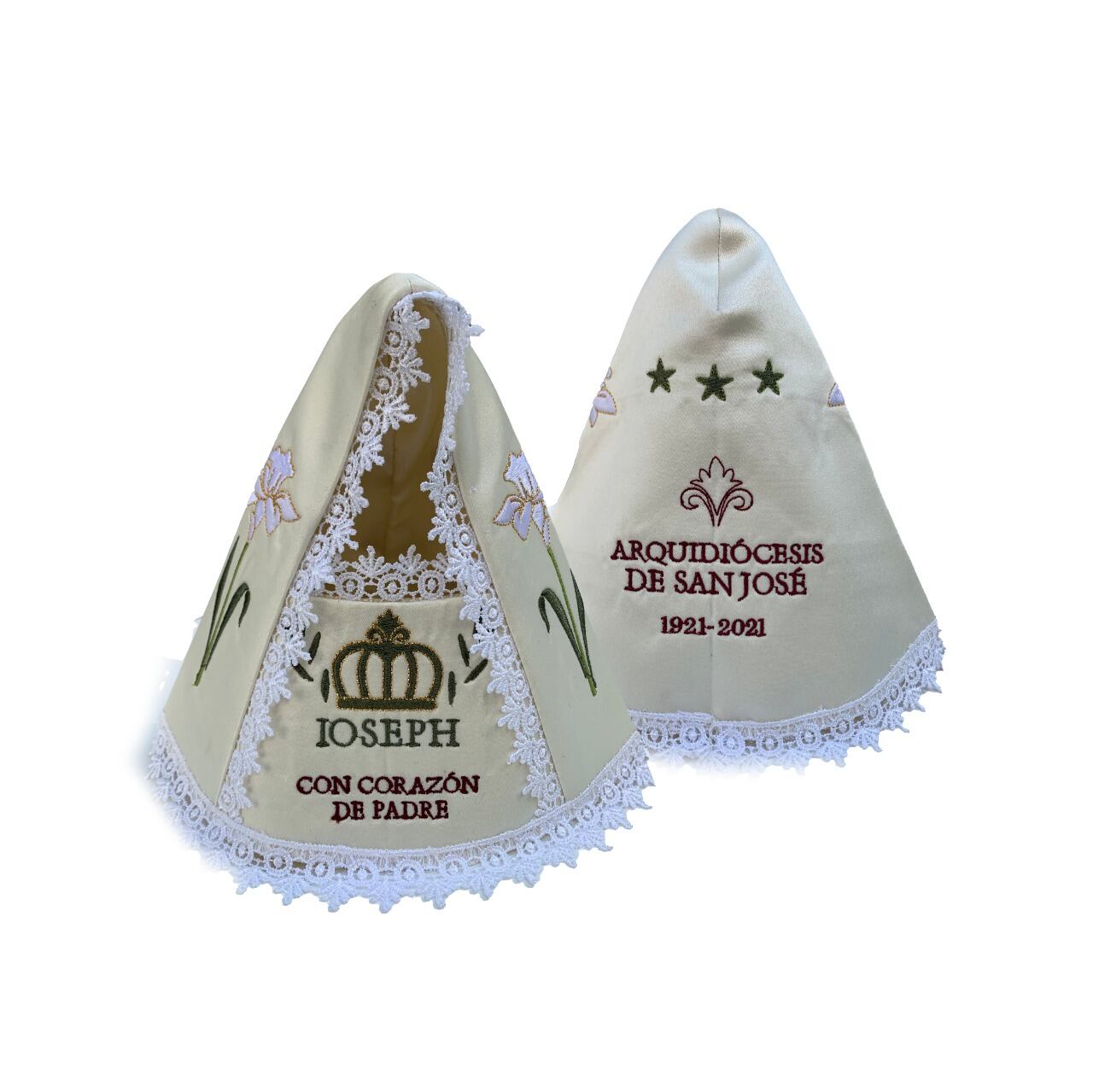 Los cinco vestidos finalistas son de gran belleza. Uno tiene una corona, que es atributo de la dignidad soberana y de la pertenencia a un linaje, en este caso José como descendiente de David y padre adoptivo de Jesús, el rey del universo.