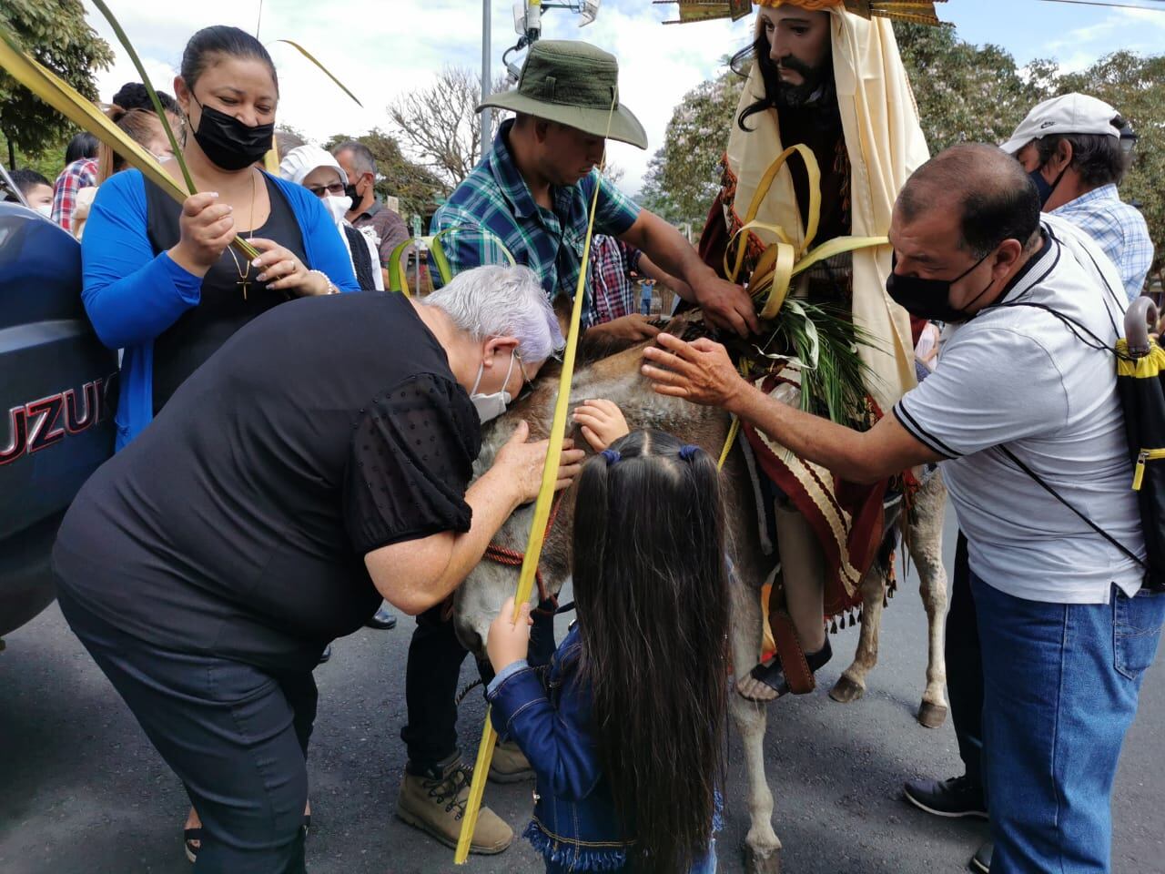 “Siente uno mucha alegría porque estos actos hacen que aumente nuestra fe. El estar todos reunidos nos hace ser humildes y vivir en comunidad como nos lo pide el Señor, me siento feliz”, comentó Nidia López, quien es vecina de Aserrí y este domingo participó de la procesión del Domingo de Ramos de la parroquia San Luis de Tolosa, que salió a las 9 a.m. de la capilla del barrio Corazón de Jesús.