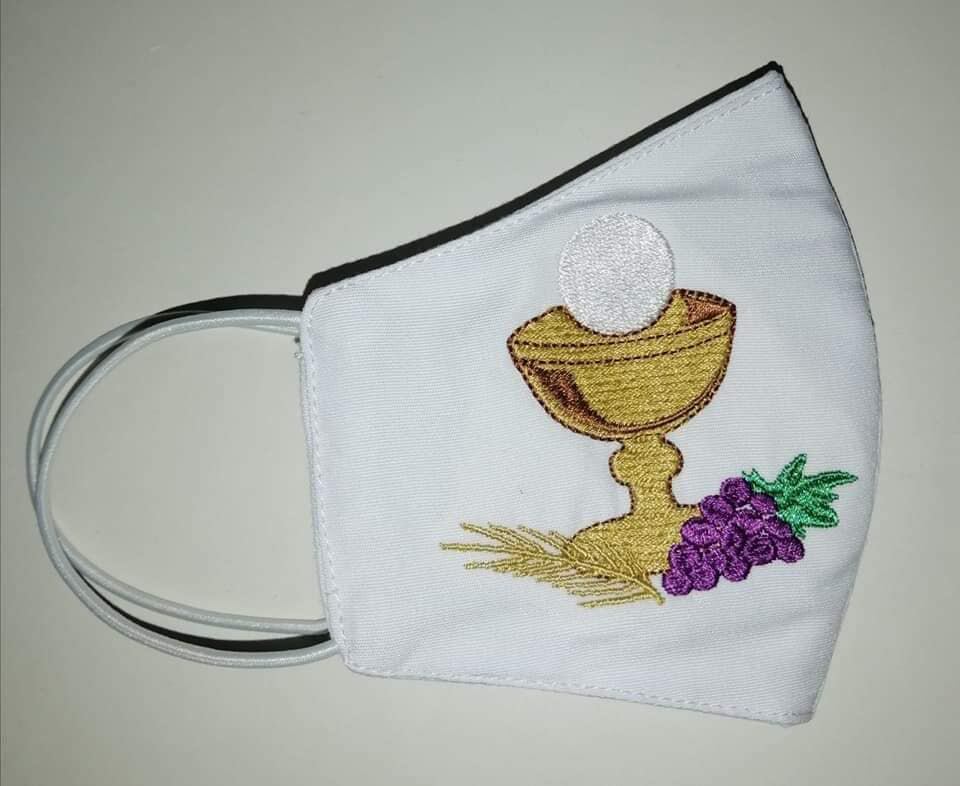 Tatiana Reyes se dedica a hacer artículos sublimados, pero en el último año el negocio ha bajado mucho. Por la necesidad de reinventarse decidió hacer mascarillas y tiene unos diseños específicamente para primeras comuniones.