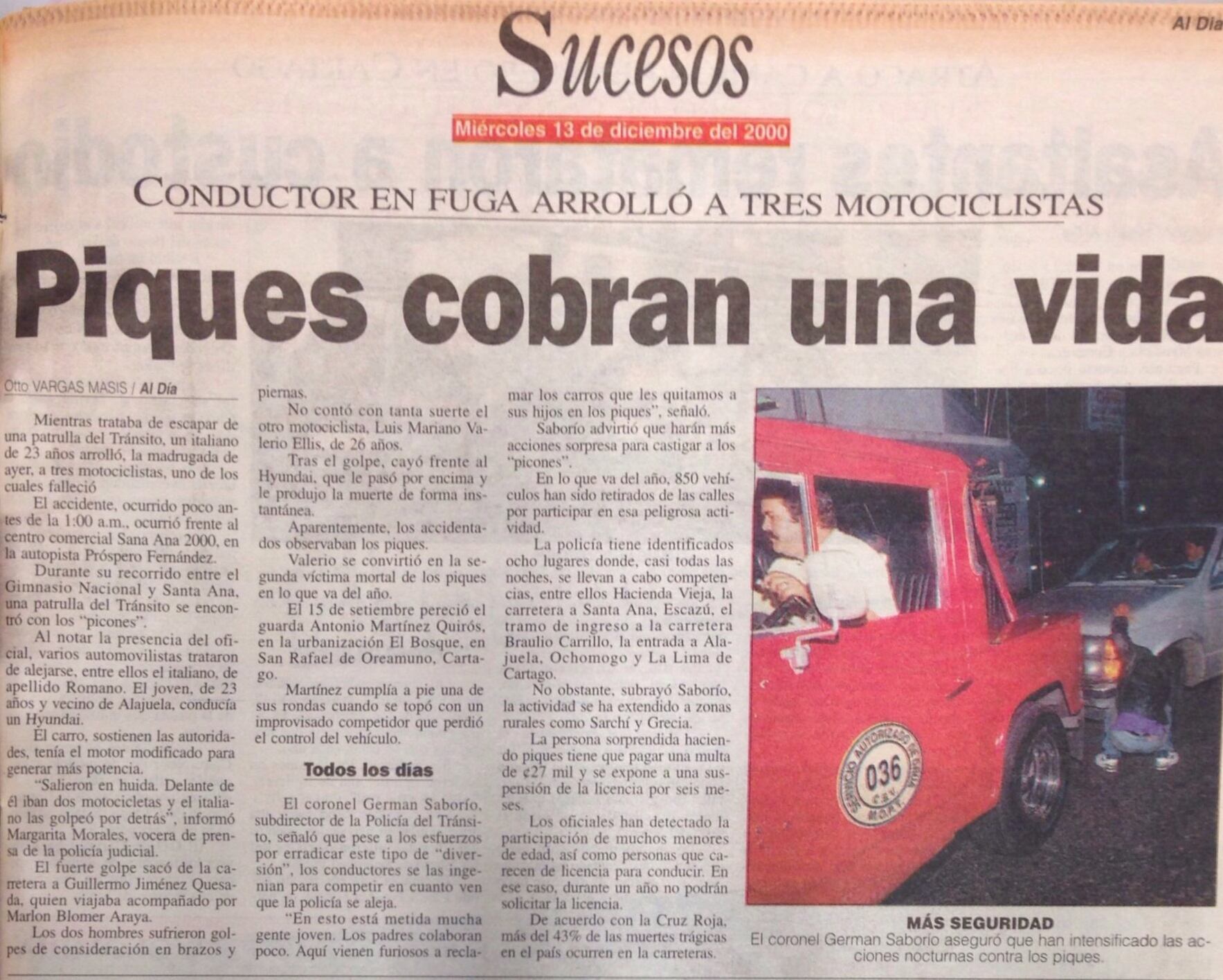 El terrible accidente en el que falleció ocurrió el 11 de diciembre del año 2000, en la carretera Próspero Fernández, cuando un joven de apellido Romano atropelló al ingeniero y le pasó por encima, al parecer, por ir picando.