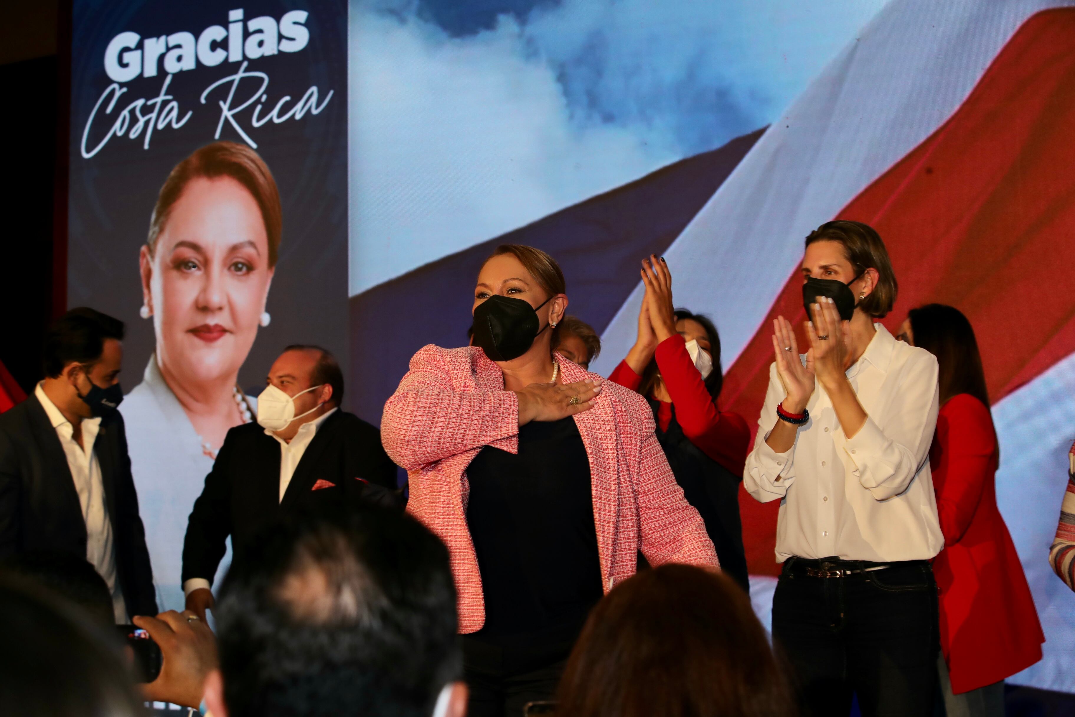 Aunque no logró llegar a la segunda ronda presidencial sí celebró que el partido Unidad Social Cristiana (PUSC) logró, de momento, colocar a 11 diputados para la próxima Asamblea Legislativa.