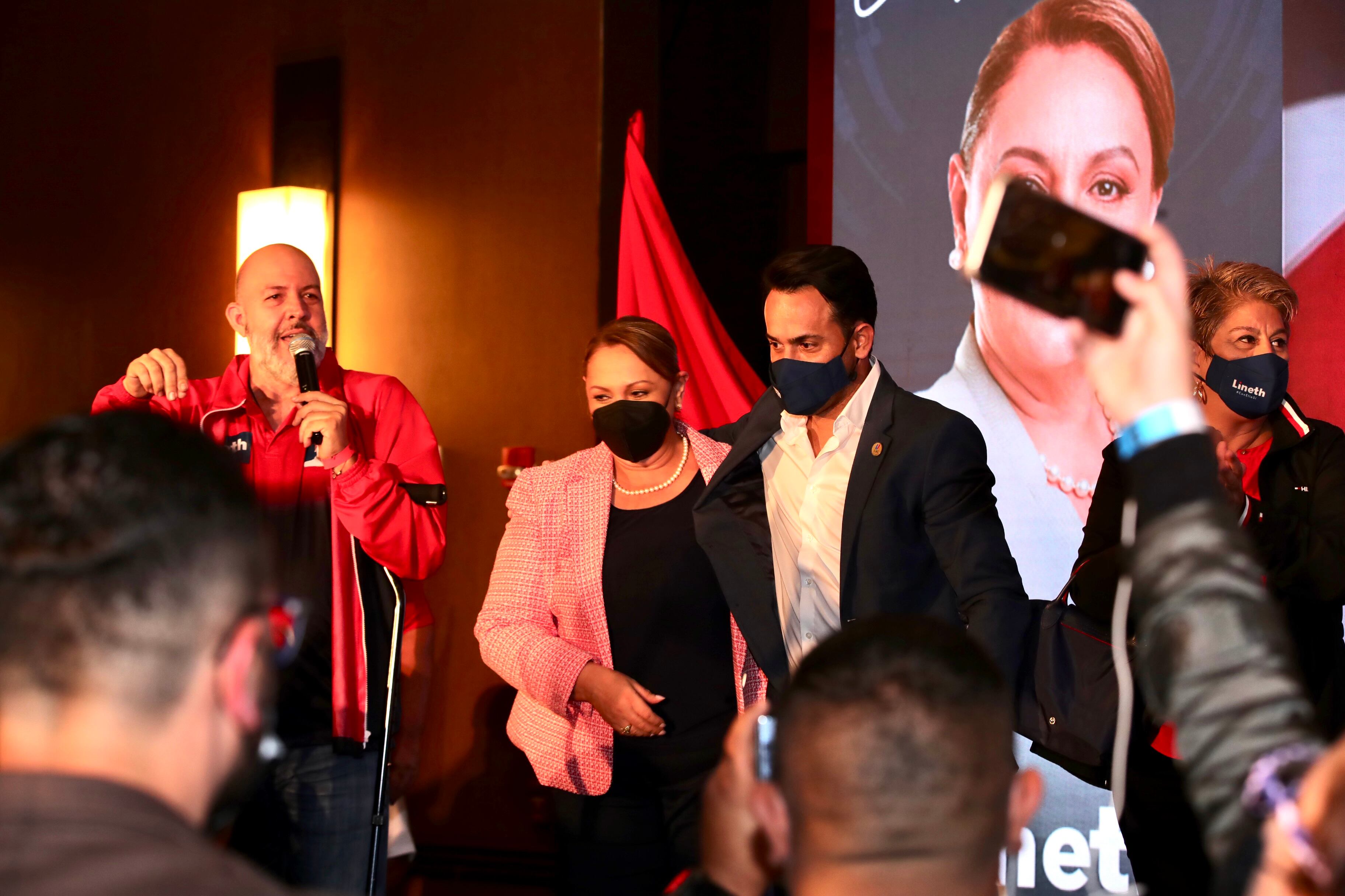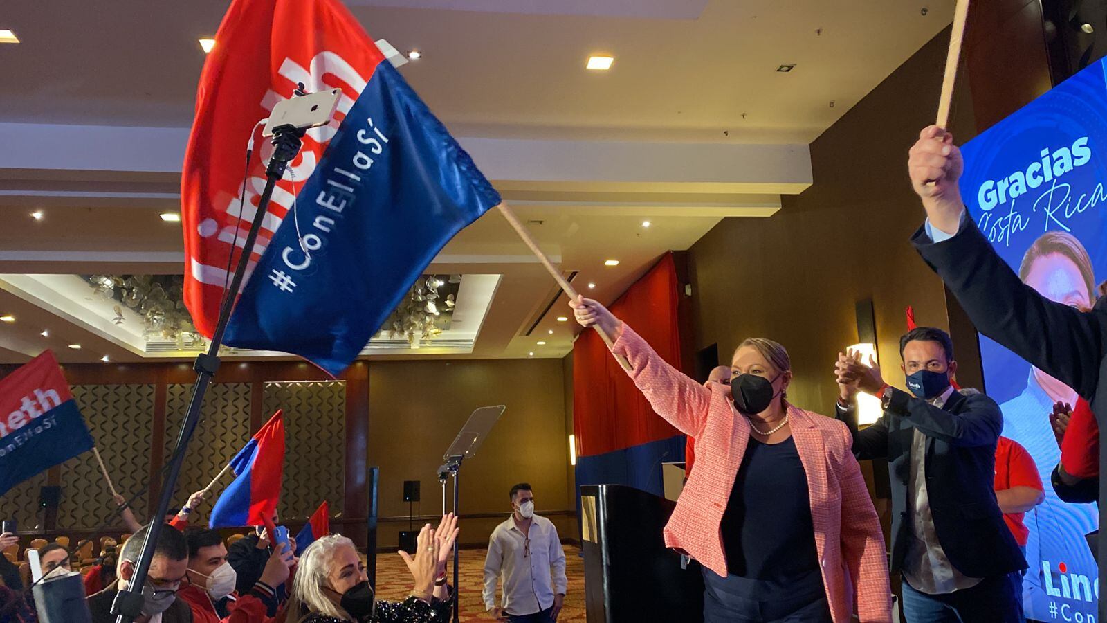 La candidata socialcristiana, Lineth Saborío, salió minutos después de las 10 p.m. de este domingo a reconocer su derrota con una gran sonrisa a pesar de los resultados.