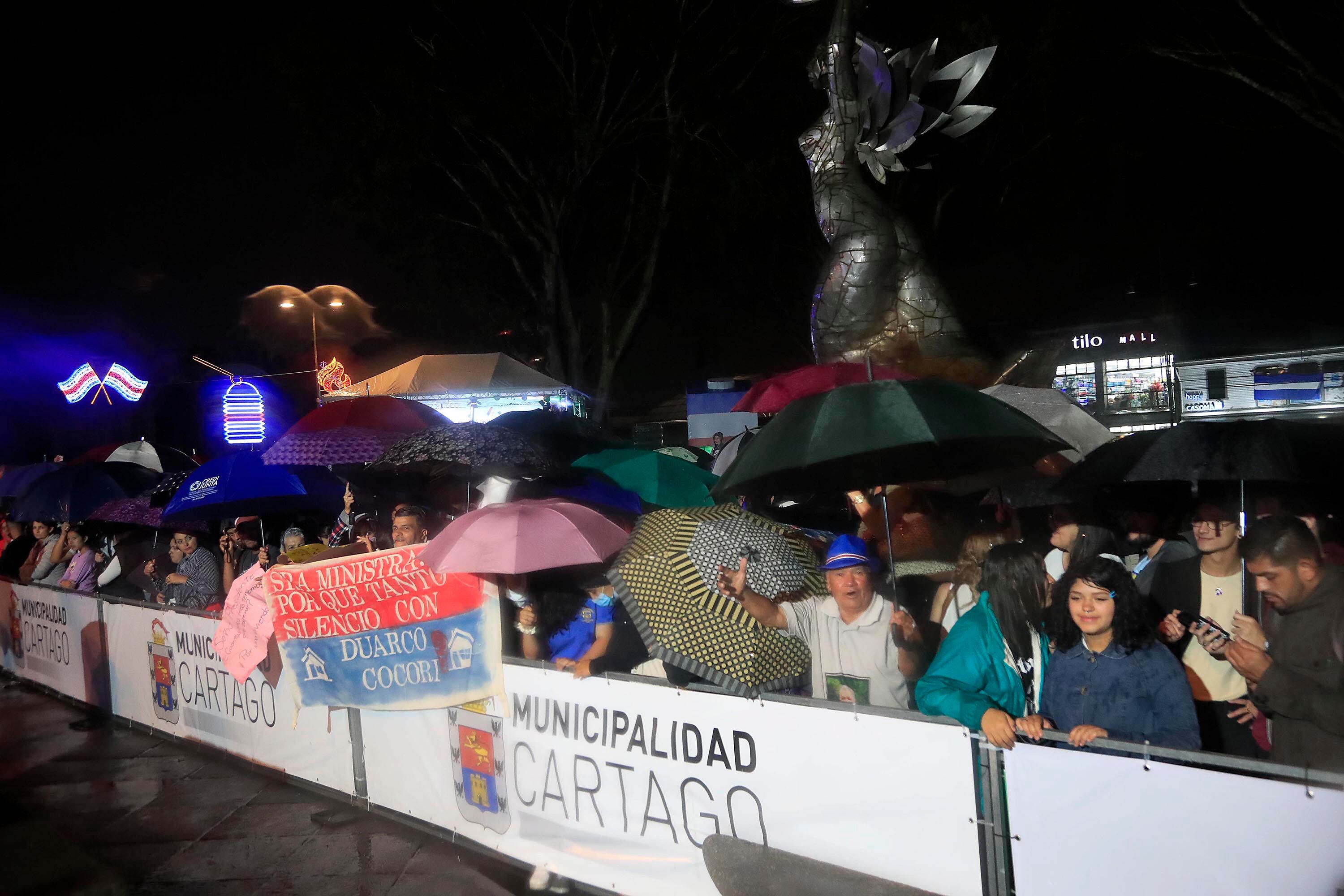 La lluvia enfrió un poco el ambiente en las celebraciones de la Independencia en Cartago pues, a comparación de otros años, esta vez llegó muy poca gente a la plaza Mayor.