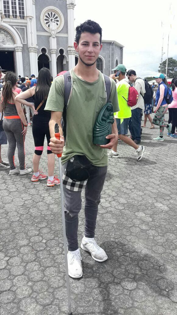 Con un profundo agradecimiento en el corazón Ernesto González trataba de explicar, ya en la basílica de los Ángeles, cómo llegó a sus manos ese especial apoyo que le sirvió de mucho mientras peregrinaba el sábado desde Pérez Zeledón.