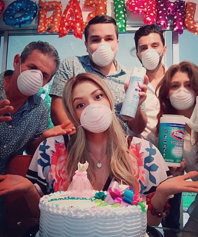 Ella posteó en redes sociales fotos de ese cumple, donde debió acudir a mascarillas y desinfectantes para estar a tono con la situación que ha generado el coronavirus.